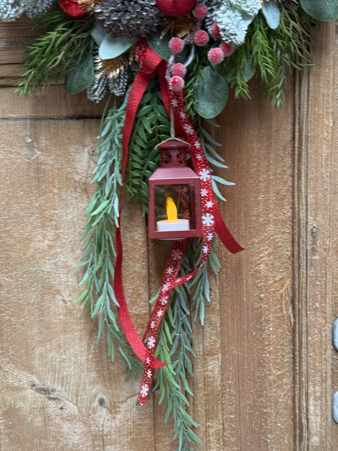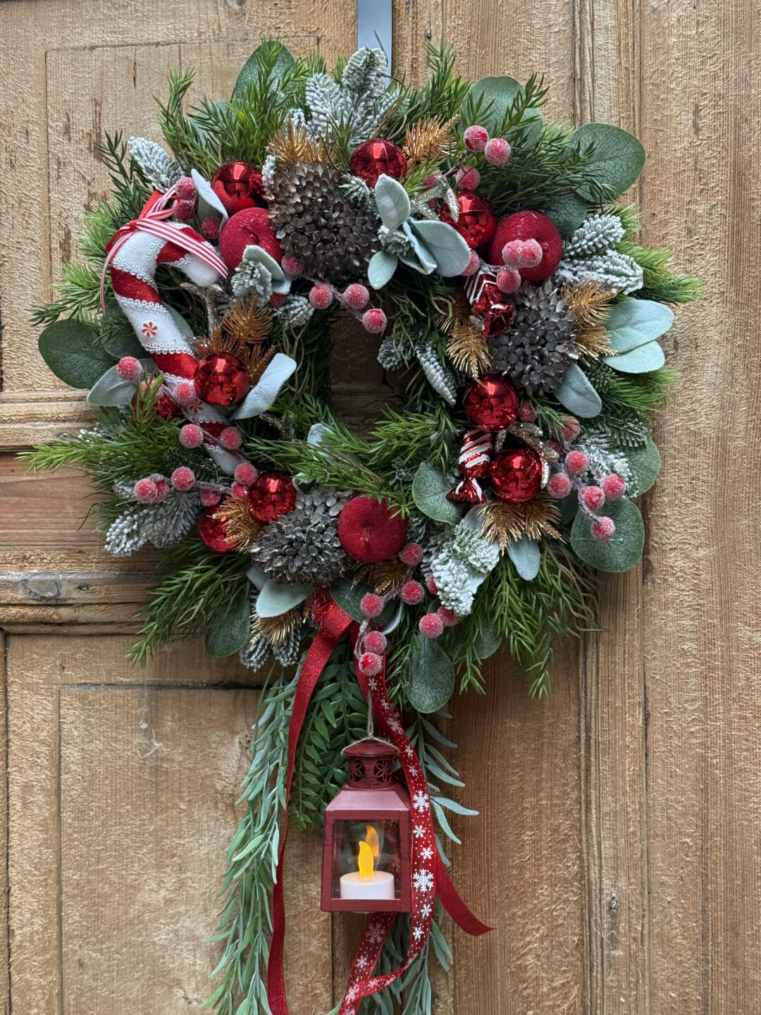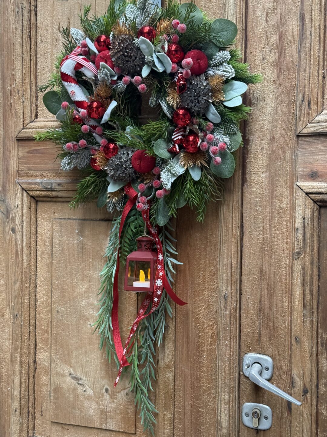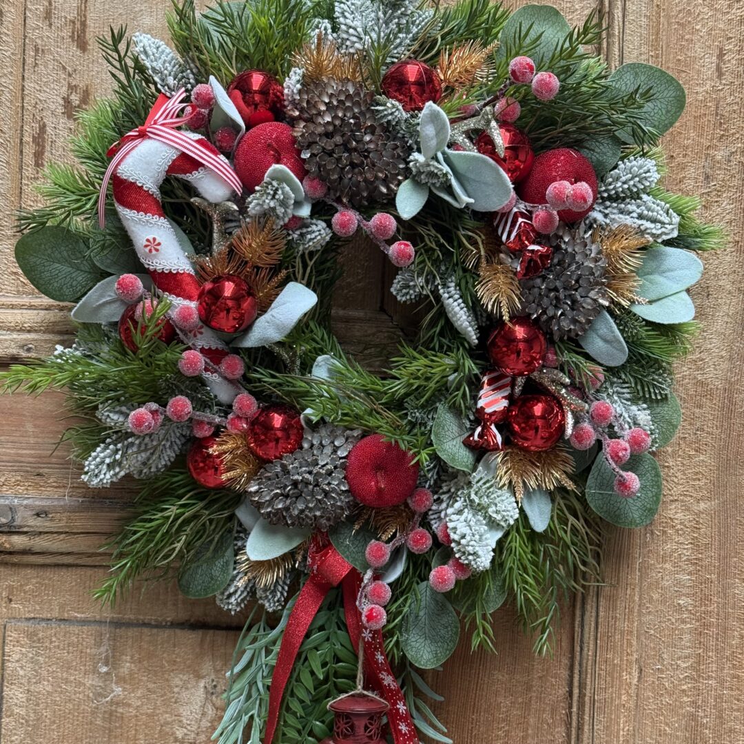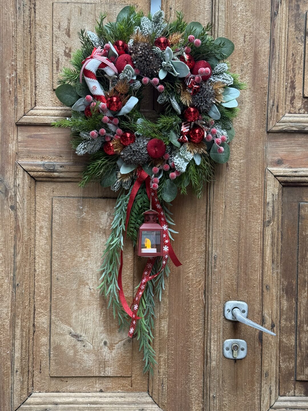 Wianek wykonany ze sztucznych świerkowych gałązek.
