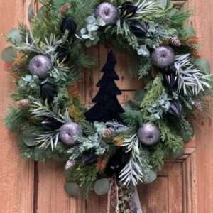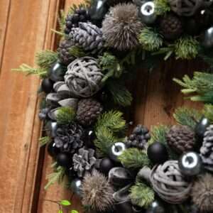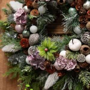 Wianek wykonany ze sztucznych świerkowych gałązek.