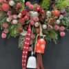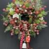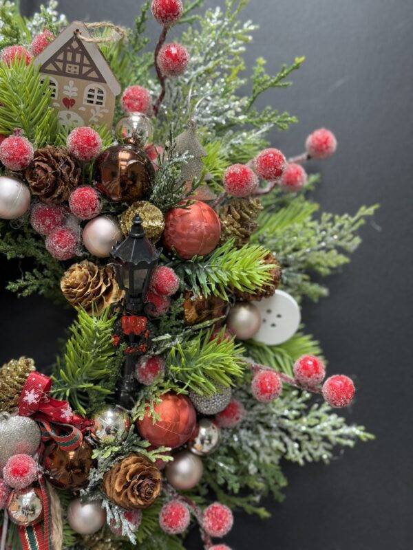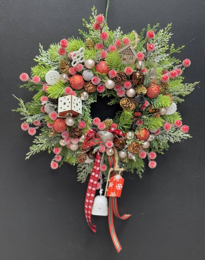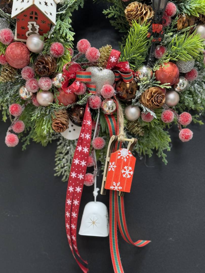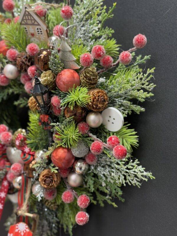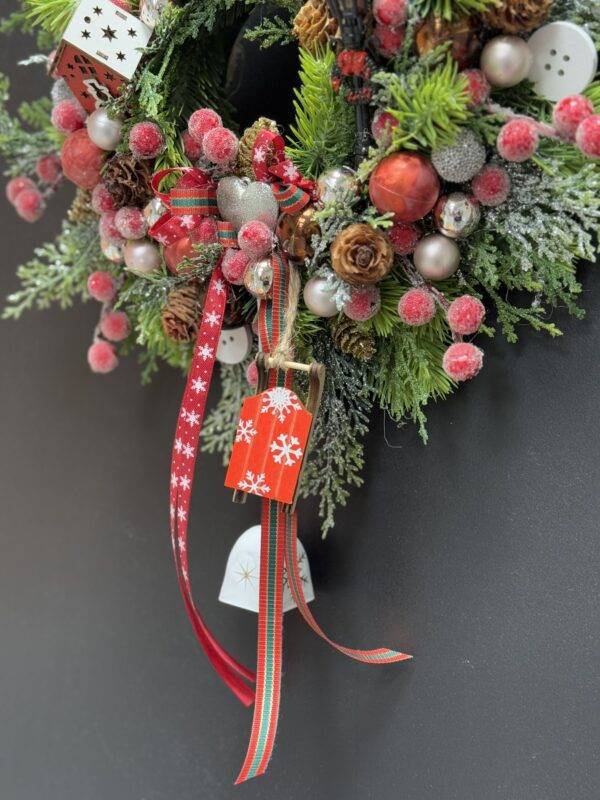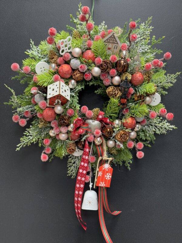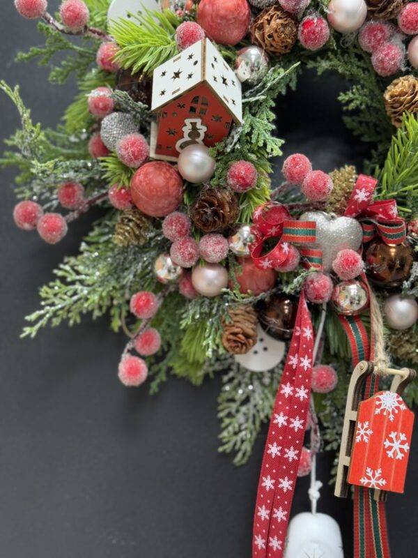 Wianek świąteczny 34 cm czerwone sanki i domek nr B331