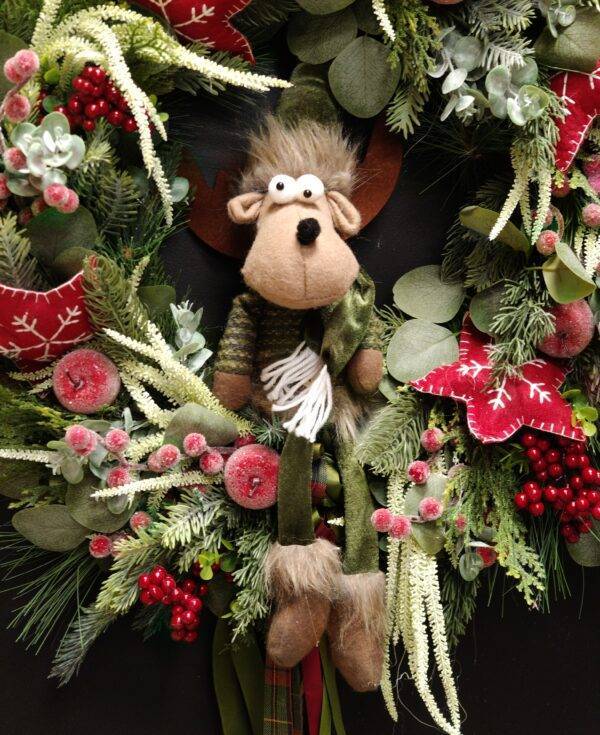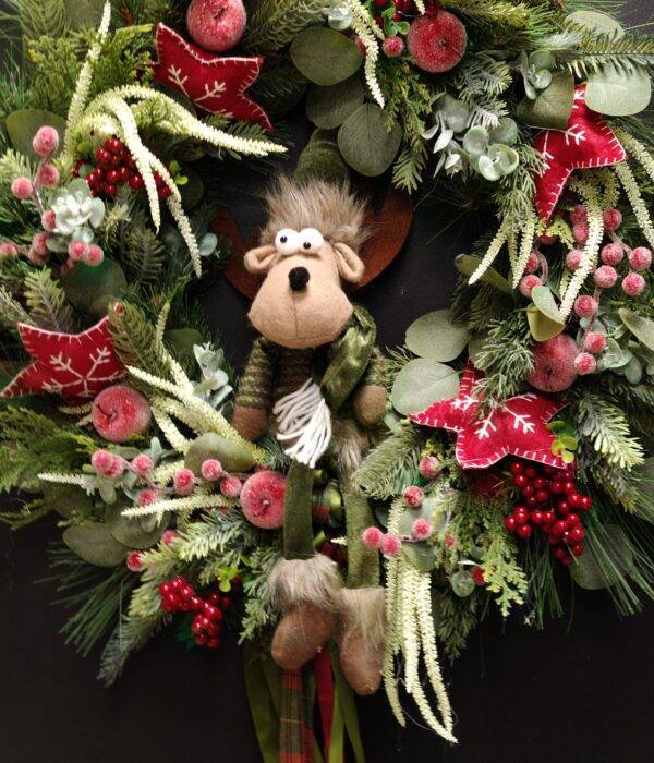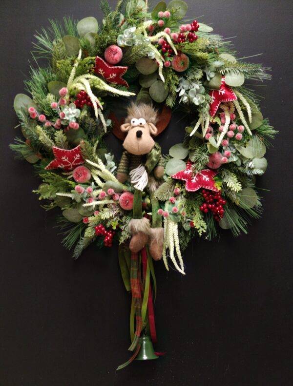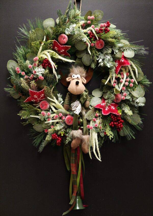 Wianek wykonany ze sztucznych świerkowych gałązek.