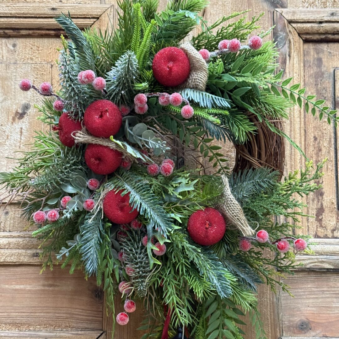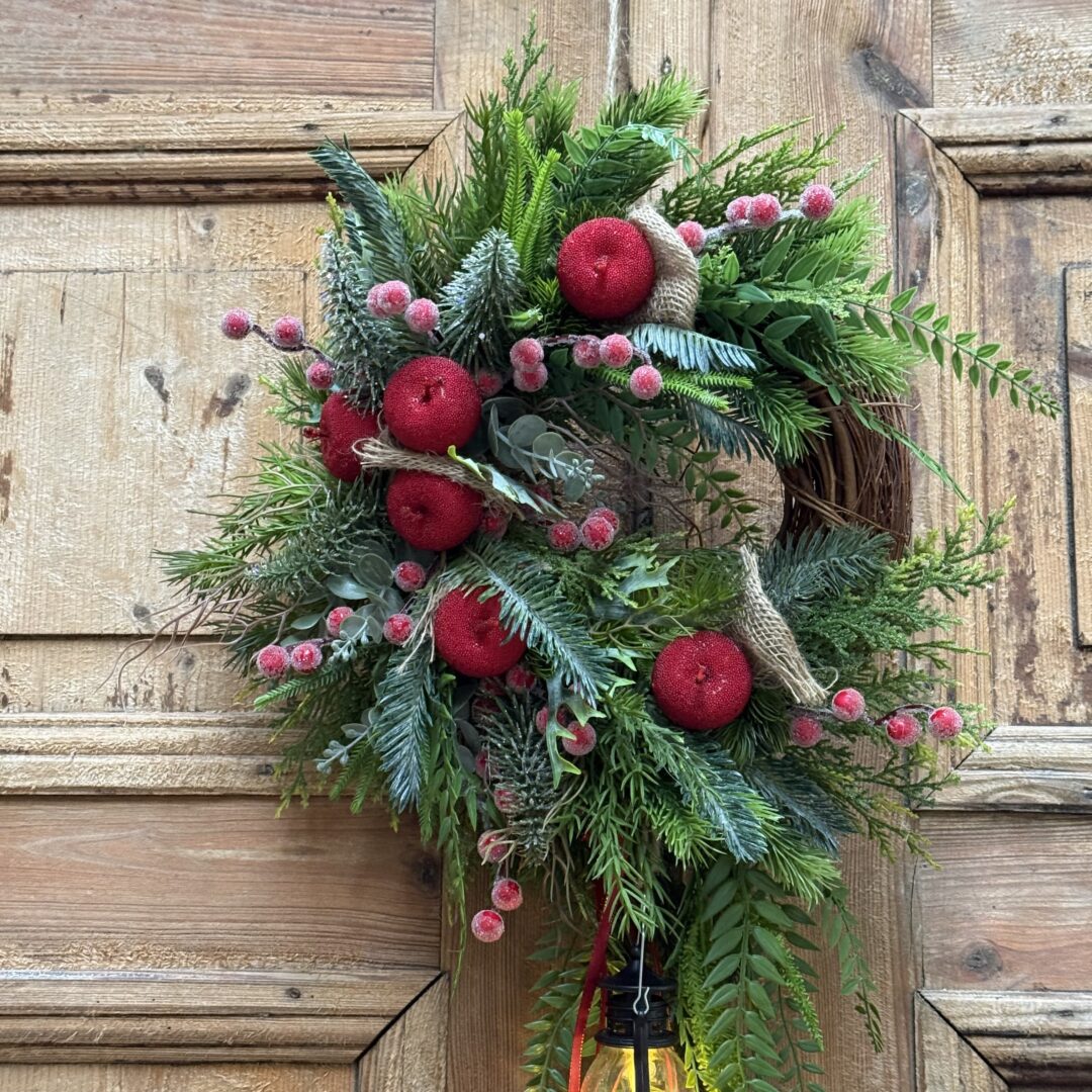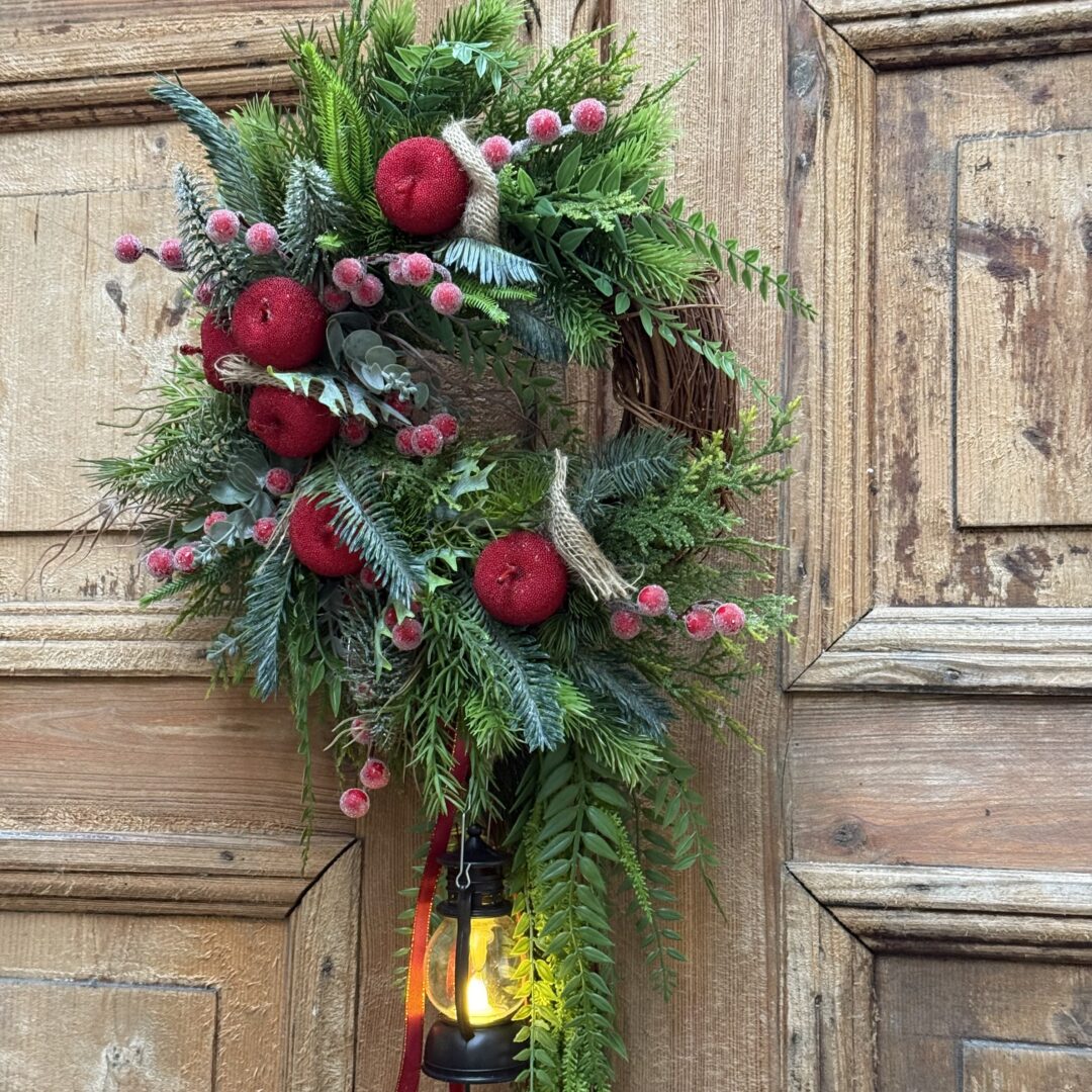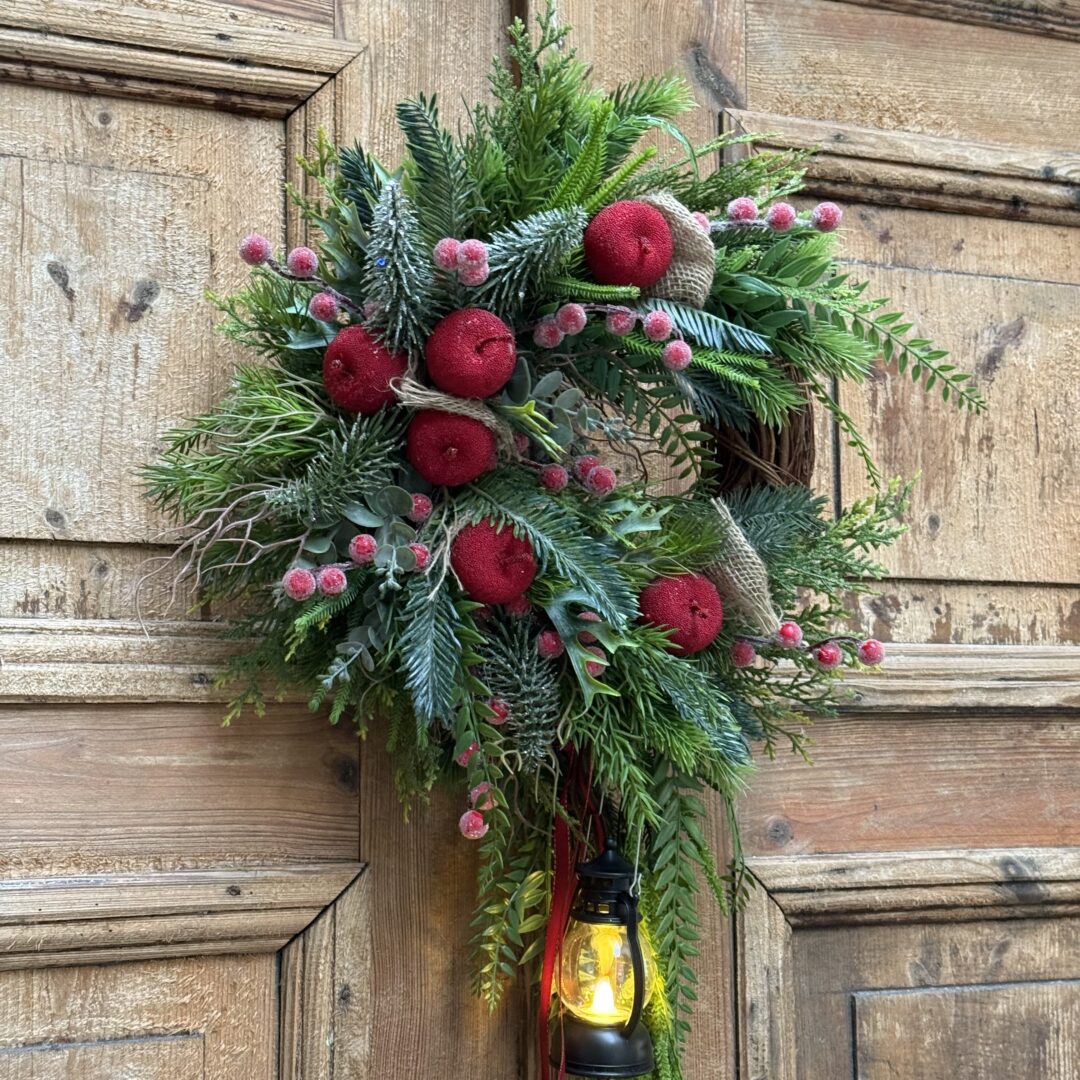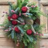 Wianek wykonany ze sztucznych świerkowych gałązek.