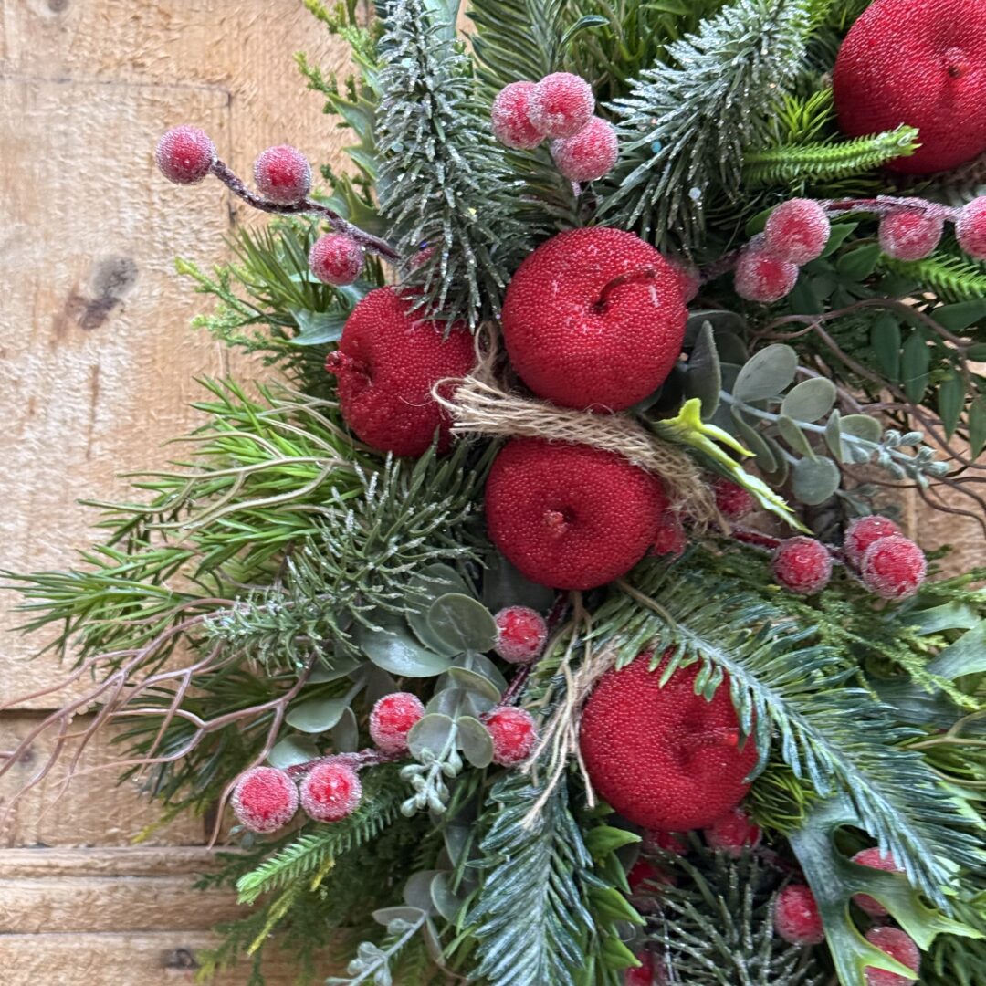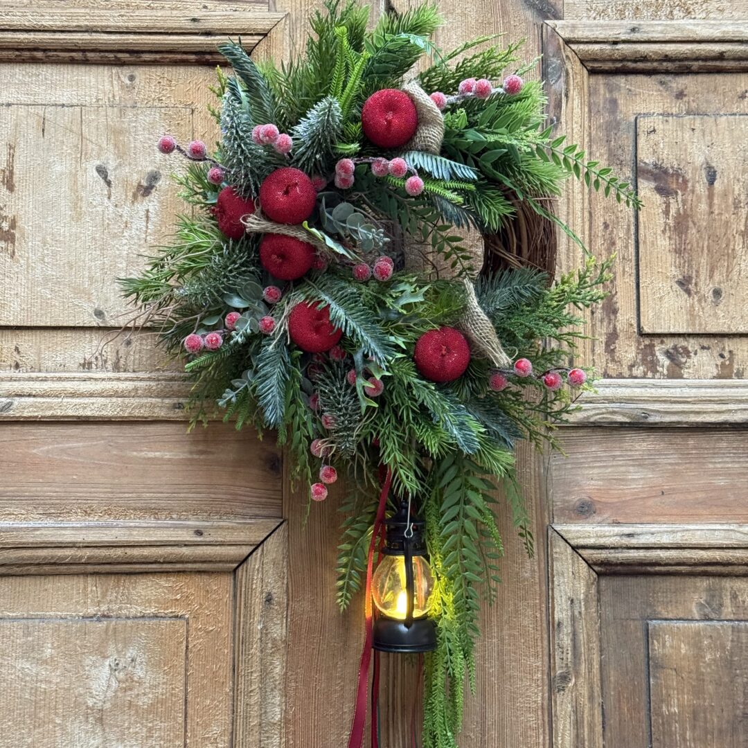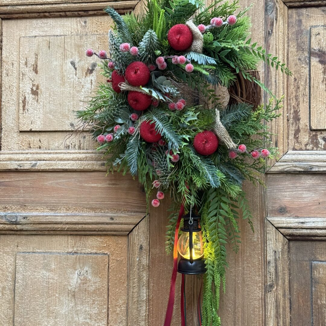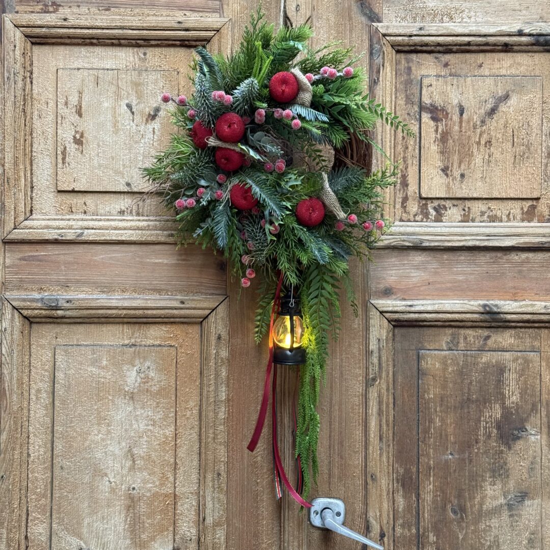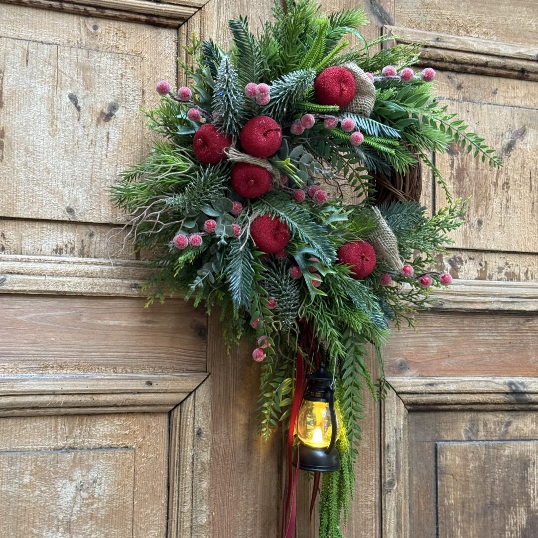Wianek wykonany ze sztucznych świerkowych gałązek.