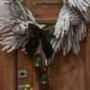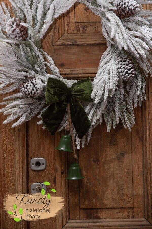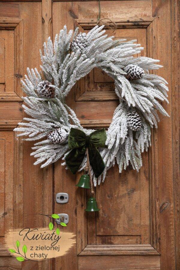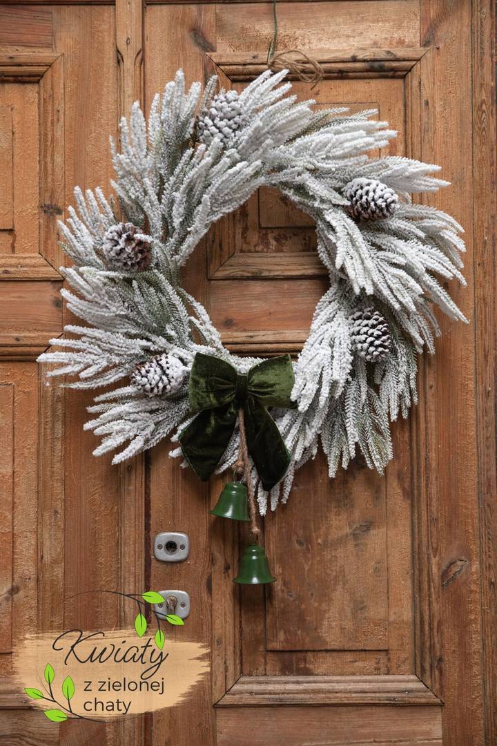 Wianek świąteczny 65 cm ośnieżony zielona kokarda nr B108