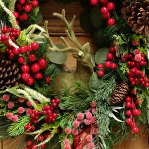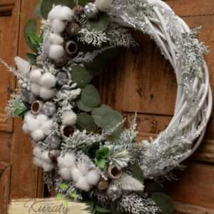 Wianek wykonany ze sztucznych świerkowych gałązek.