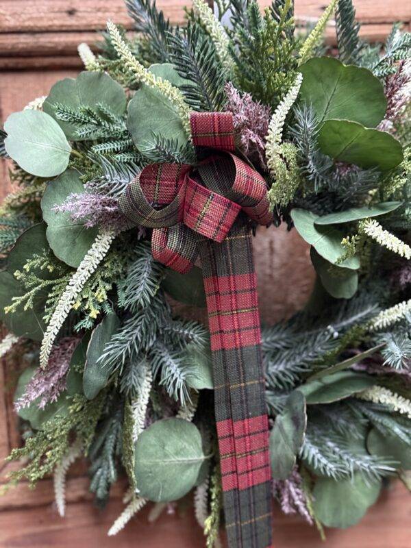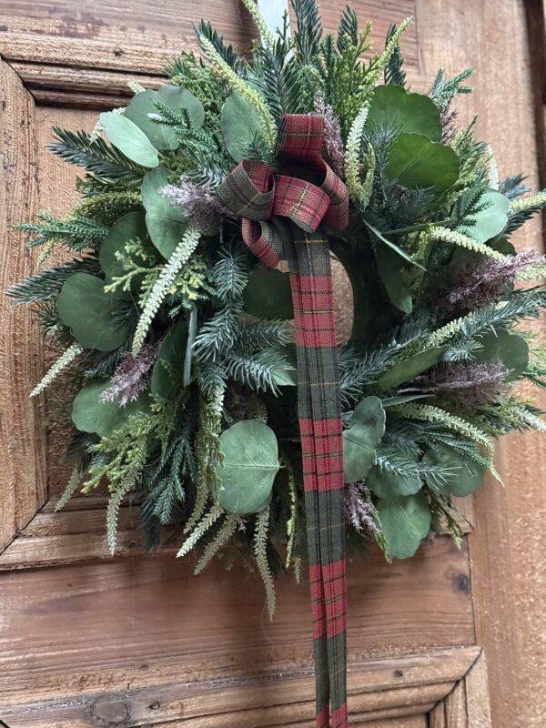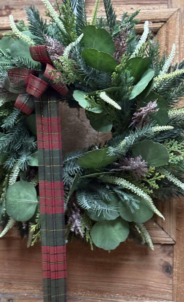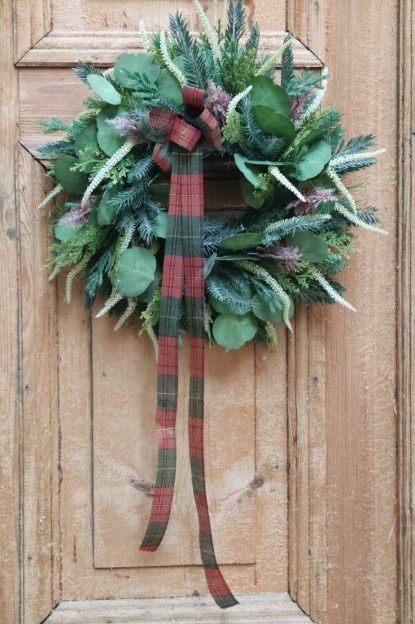 Wianek świąteczny 38 cm zielony wstążka krata nr B257