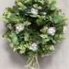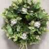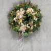 Wianek wykonany w całości ze sztucznych kwiatów i dodatków.