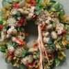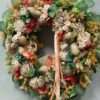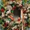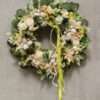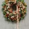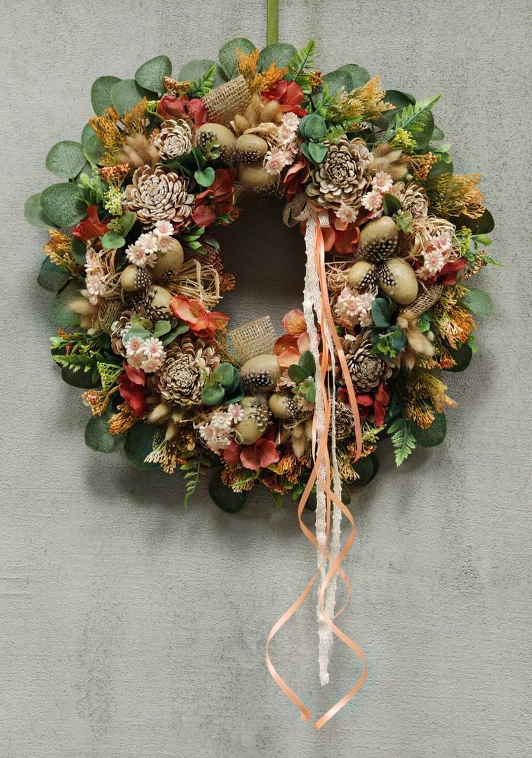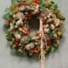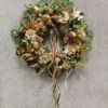 Wianek wykonany w całości ze sztucznych kwiatów i dodatków.