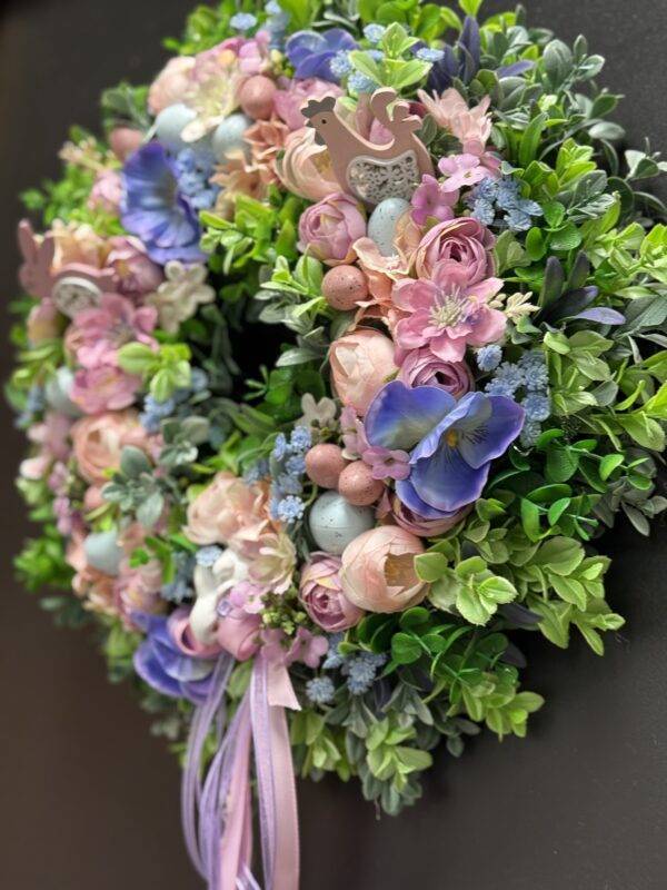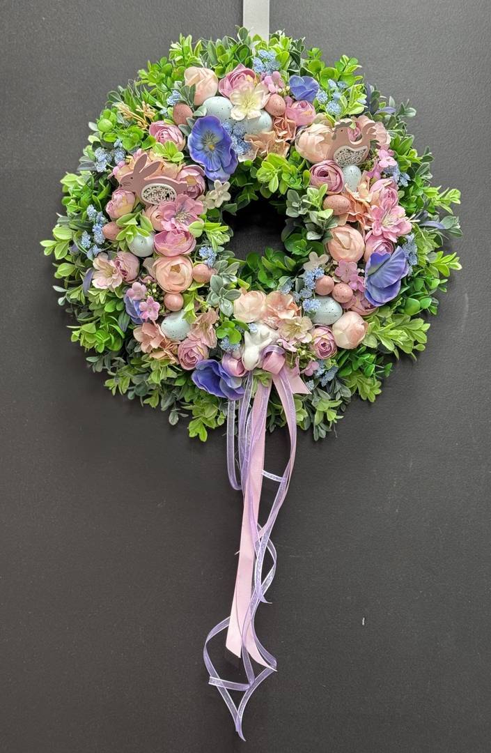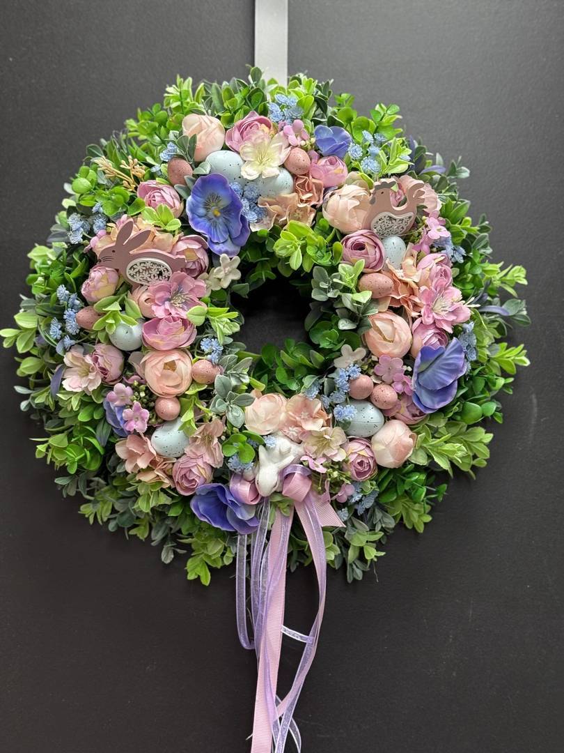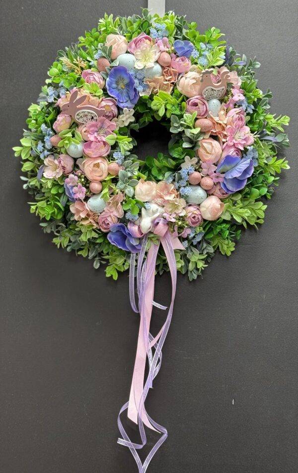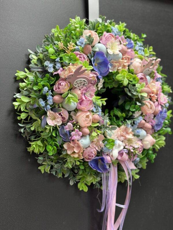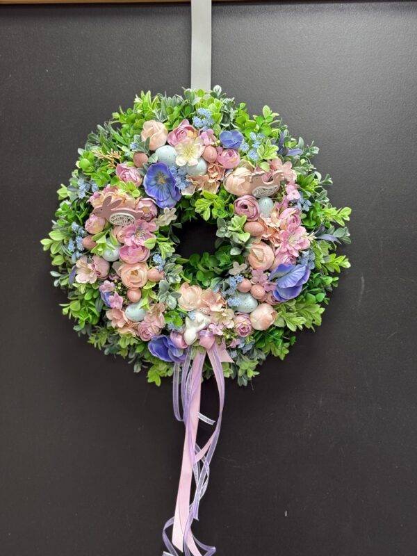 Wianek wiosenny niebiesko różowy 36 cm nr S145