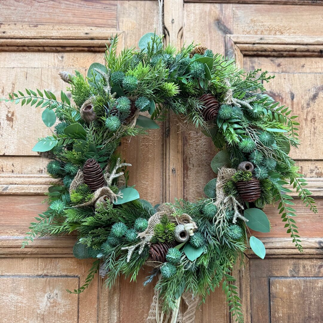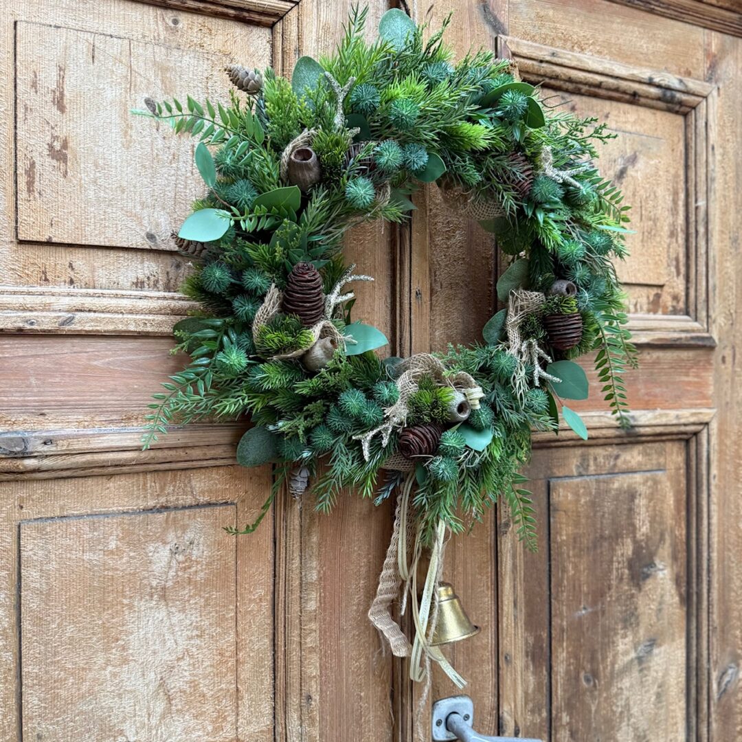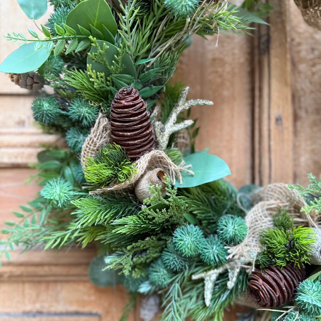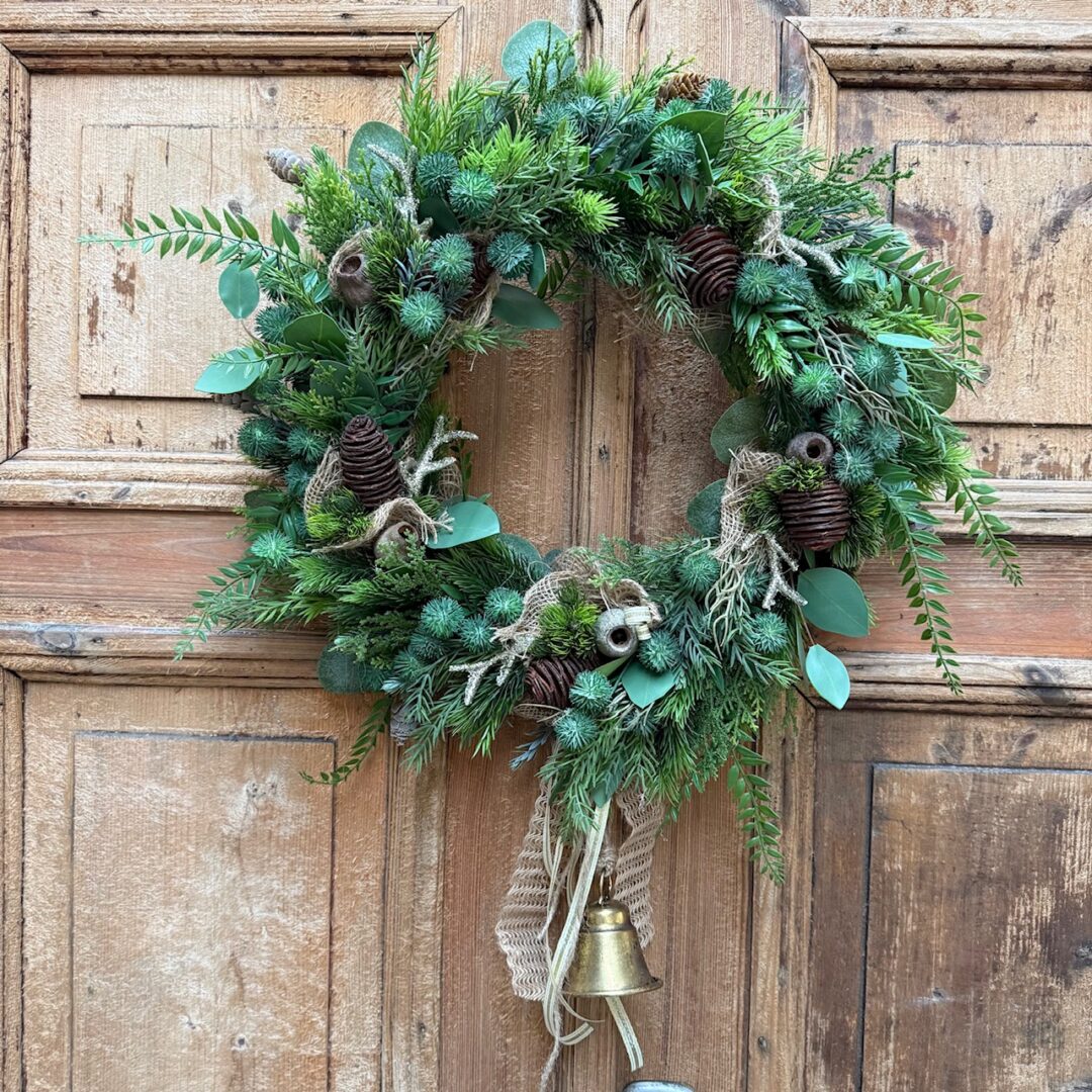 Wianek wykonany ze sztucznych świerkowych gałązek.