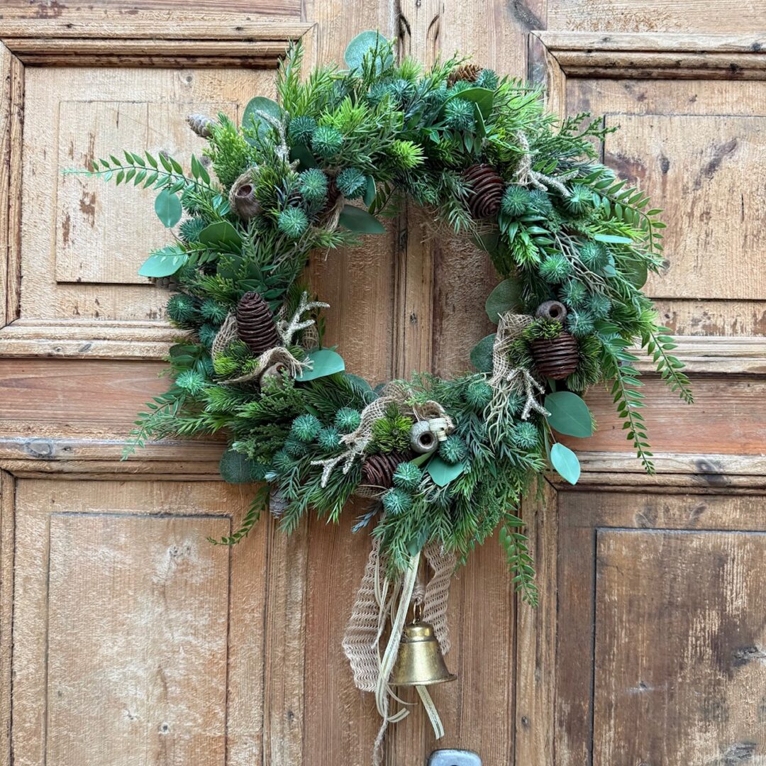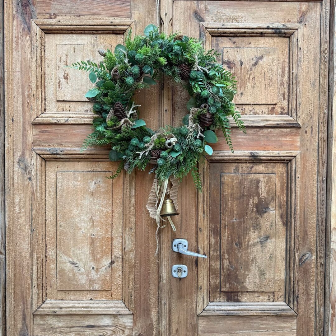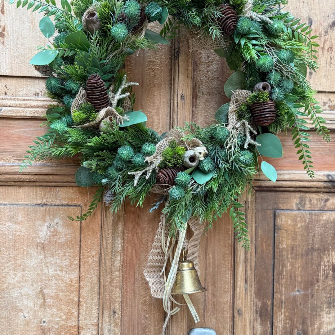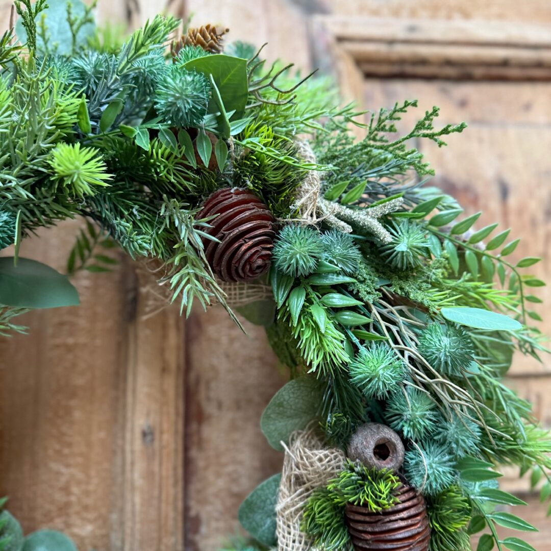 Wianek wykonany ze sztucznych świerkowych gałązek.