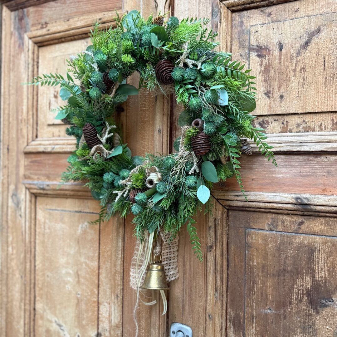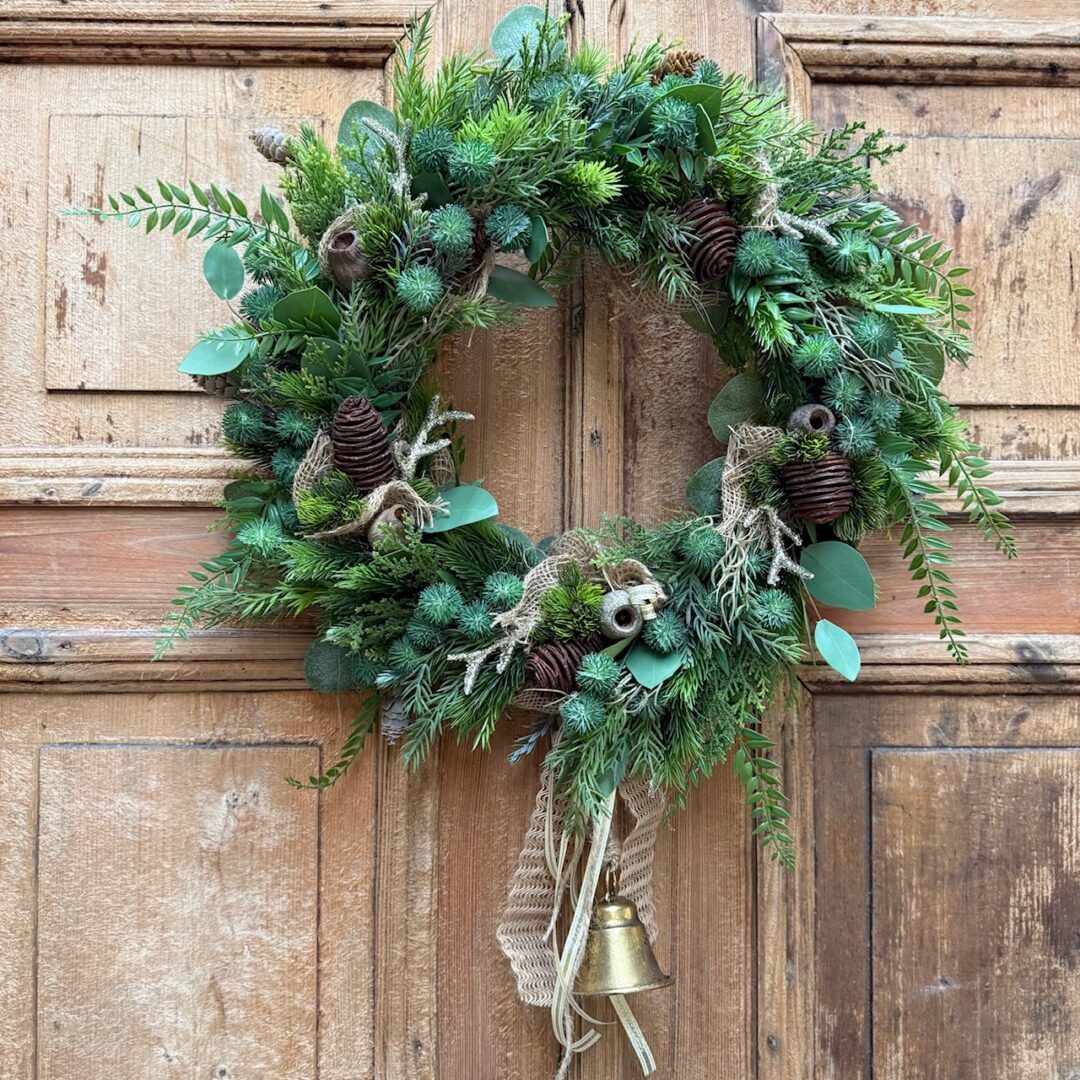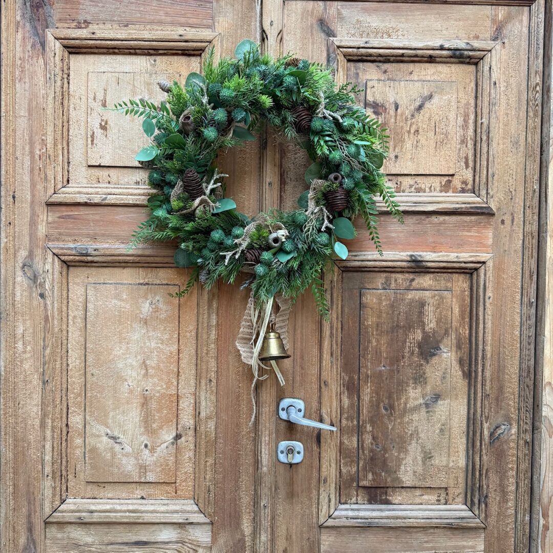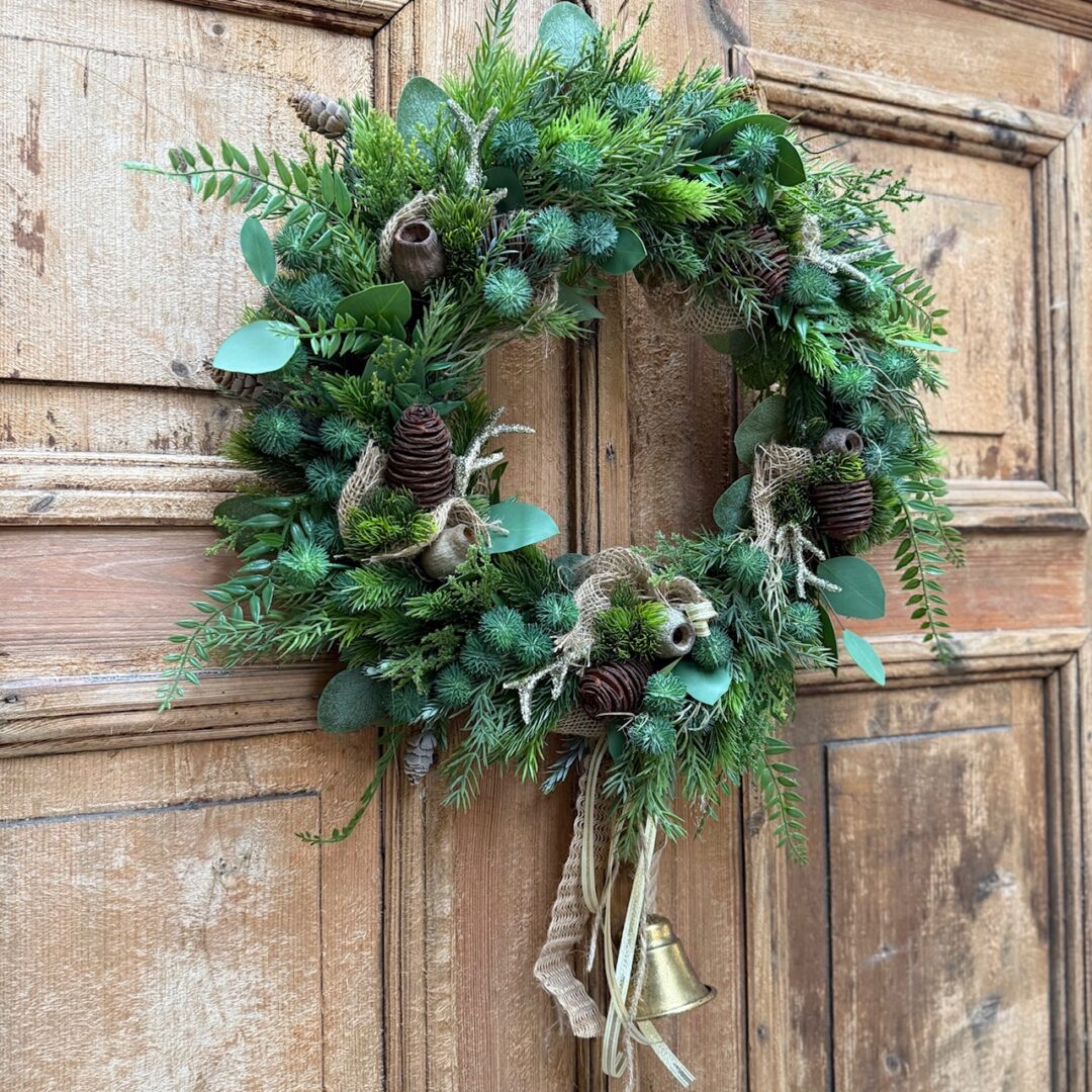 Wianek wykonany ze sztucznych świerkowych gałązek.