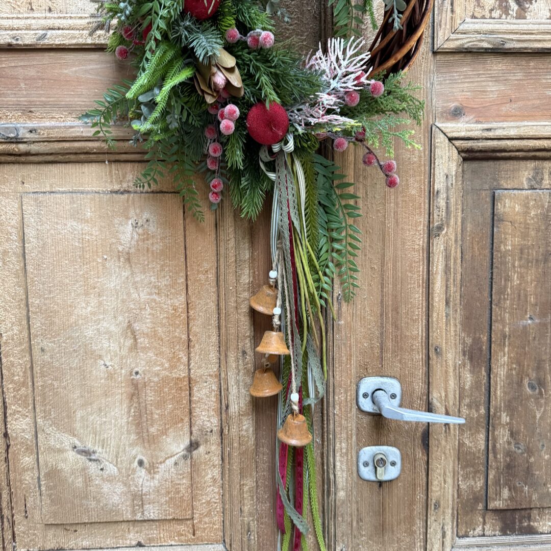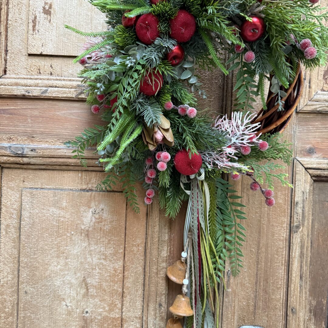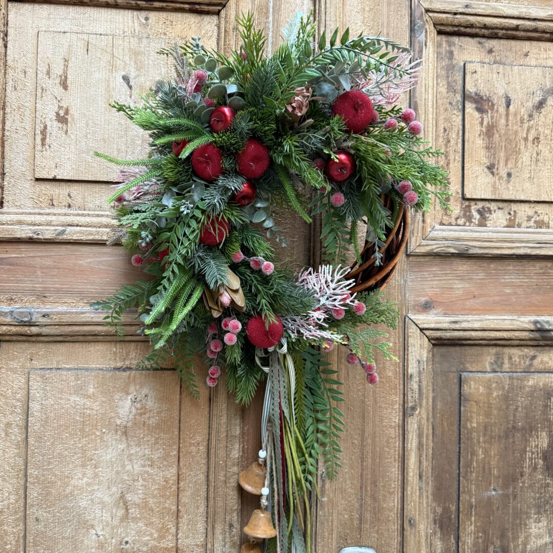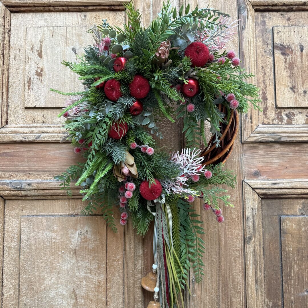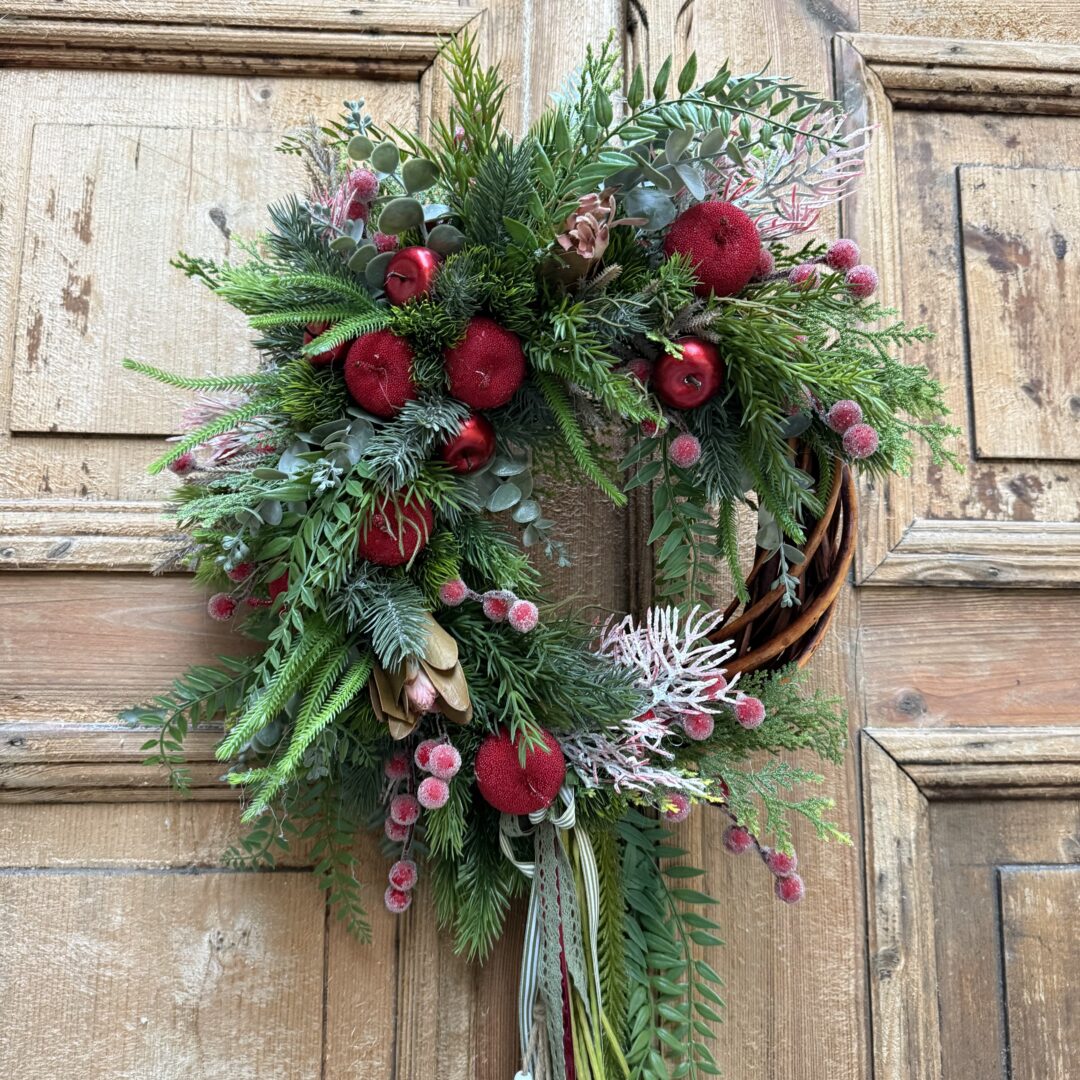 Wianek zimowy jabłuszka rdzawe dzwonki 40 cm nr B389
