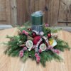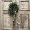 Wianek wykonany na wiklinowym wianku, ze sztucznych świerkowych gałązek