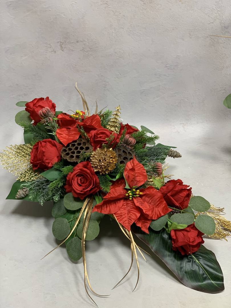 Dekoracja do położenia na grób w obciążonej misce szerokość około 45 cm i długości około 75 cm
