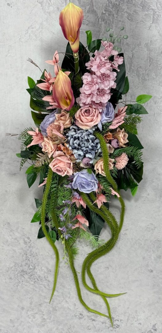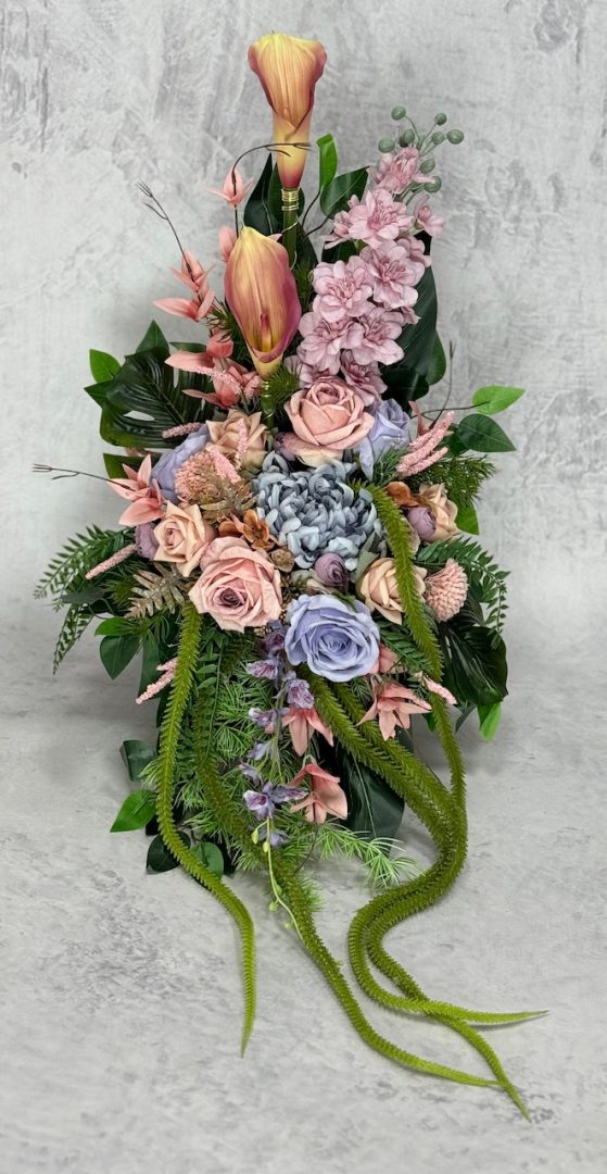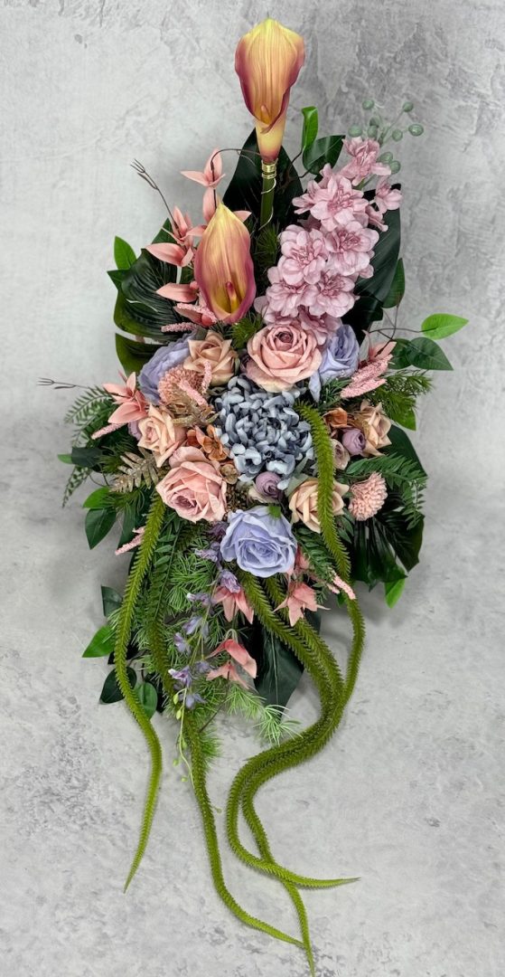 Wszystkie kwiaty sztuczne użyte w naszych kompozycjach są wysokiej jakości – dzięki temu zachwycają swym urokiem i pięknem przez długi czas.