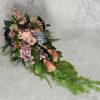 Bukiet ułożony we wkładzie o standardowych wymiarach 16 cm, wysokość razem z wkładem około 65 cm, szerokość około 45 cm.