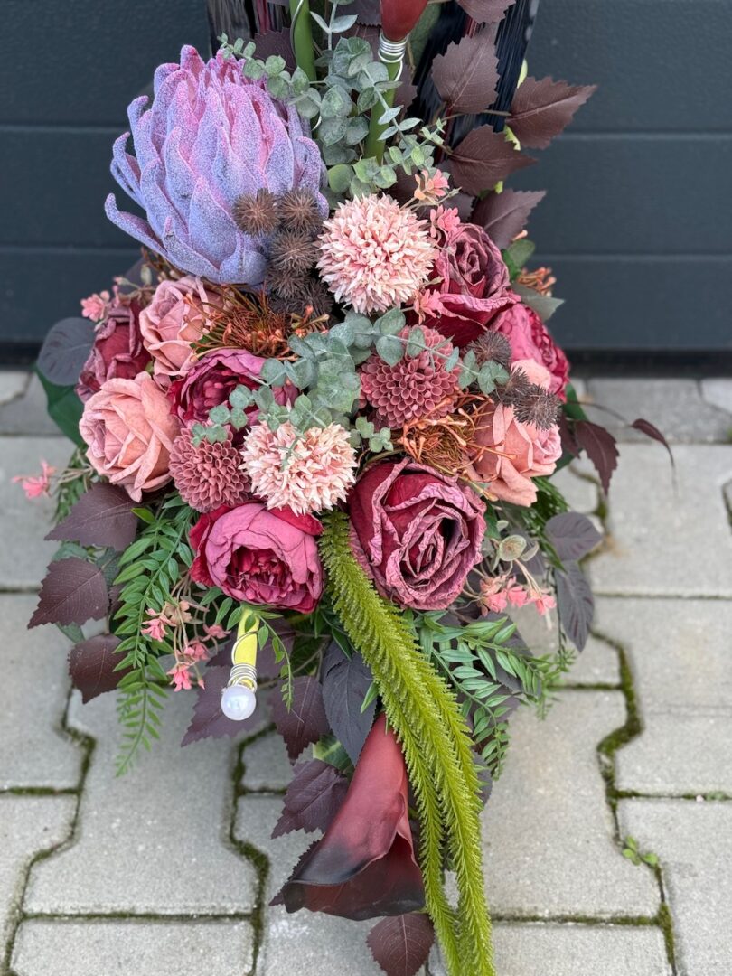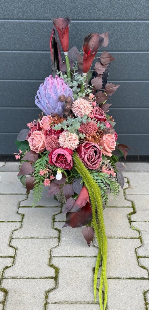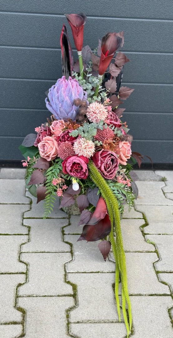 Wszystkie kwiaty sztuczne użyte w naszych kompozycjach są wysokiej jakości – dzięki temu zachwycają swym urokiem i pięknem przez długi czas.