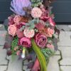 Bukiet na ułożony we wkładzie o standardowych wymiarach 16 cm – wysokość razem z wkładem około 66 cm, szerokość około 42 cm.