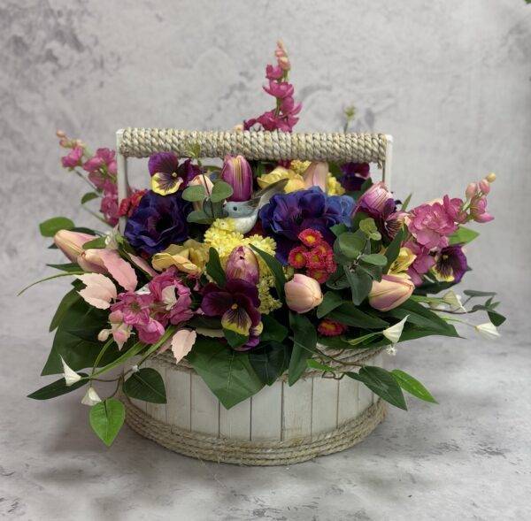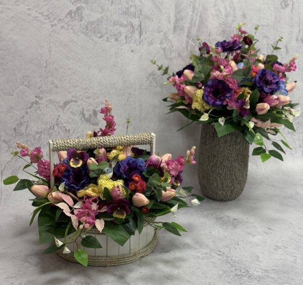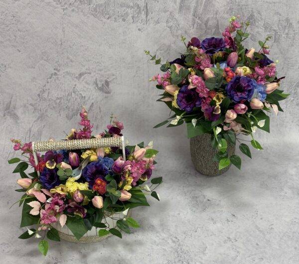 Wszystkie kwiaty sztuczne użyte w naszych kompozycjach są wysokiej jakości – dzięki temu zachwycają swym urokiem i pięknem przez długi czas.