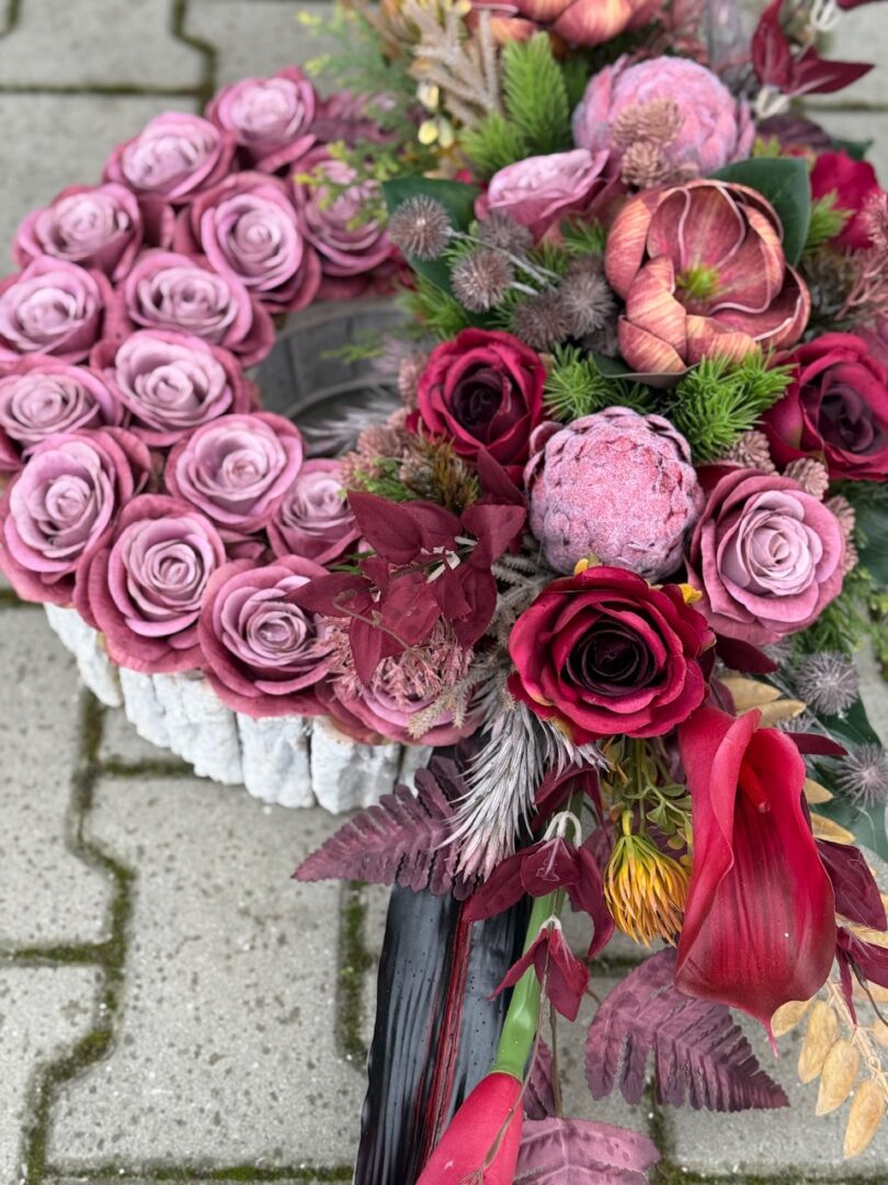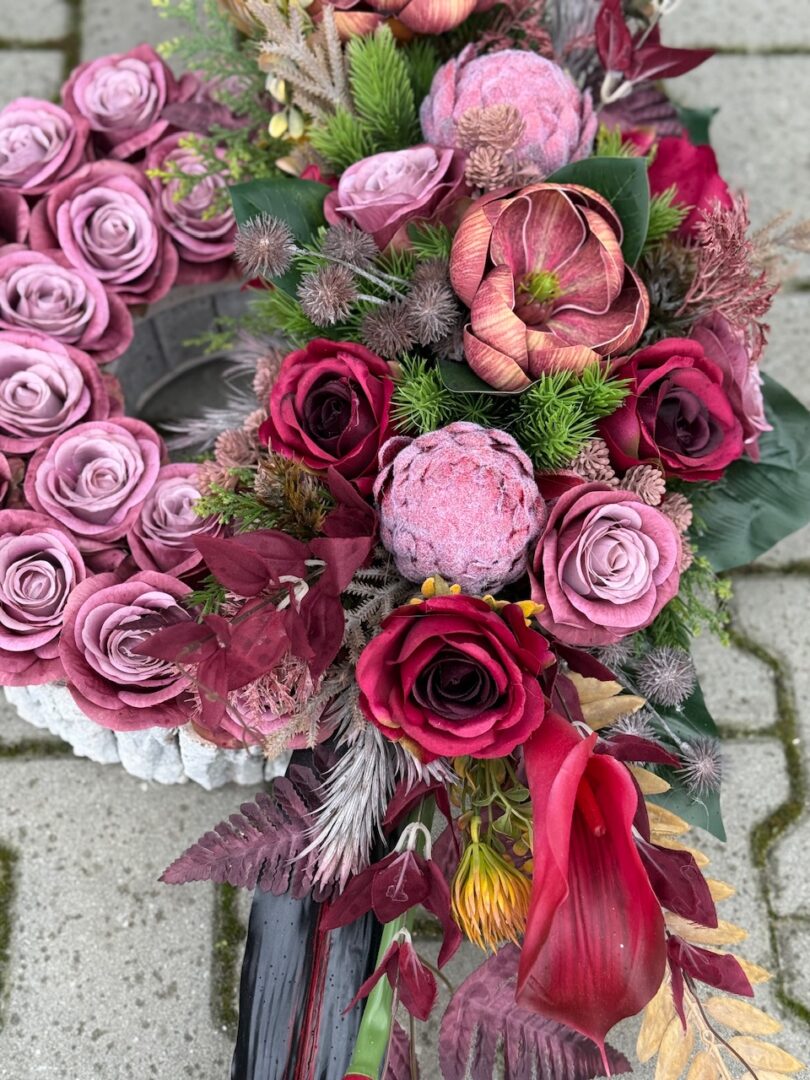 Wszystkie kwiaty sztuczne użyte w naszych kompozycjach są wysokiej jakości – dzięki temu zachwycają swym urokiem i pięknem przez długi czas.