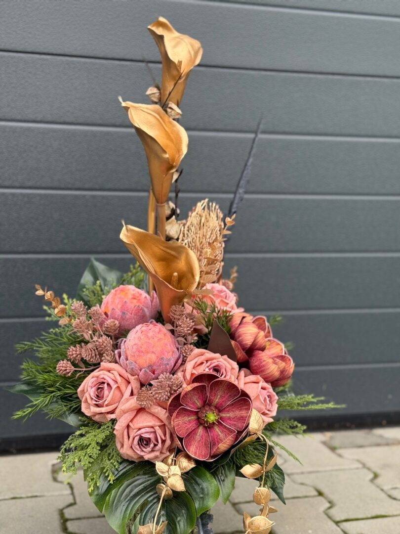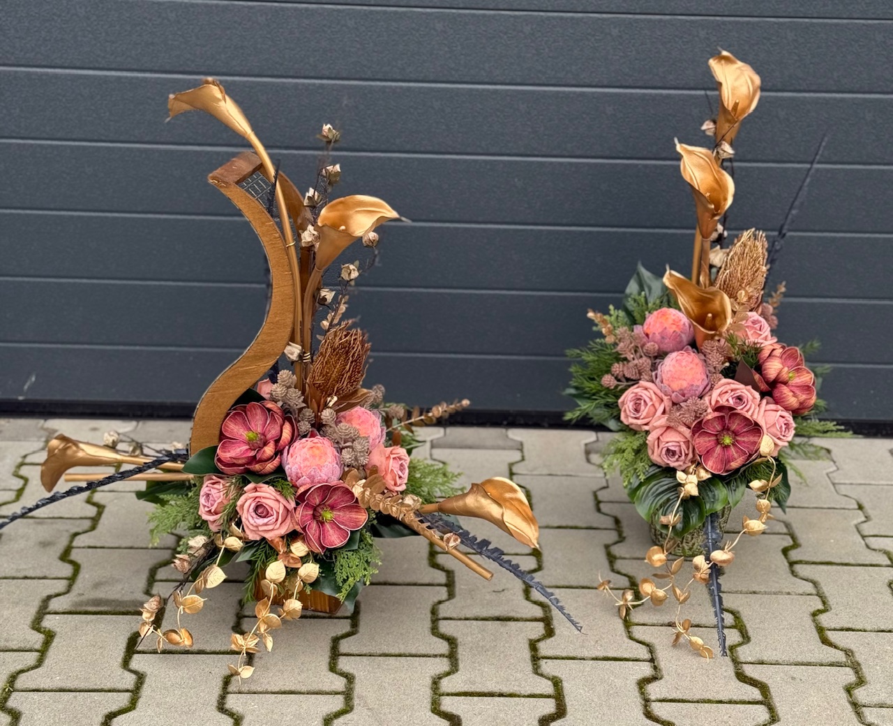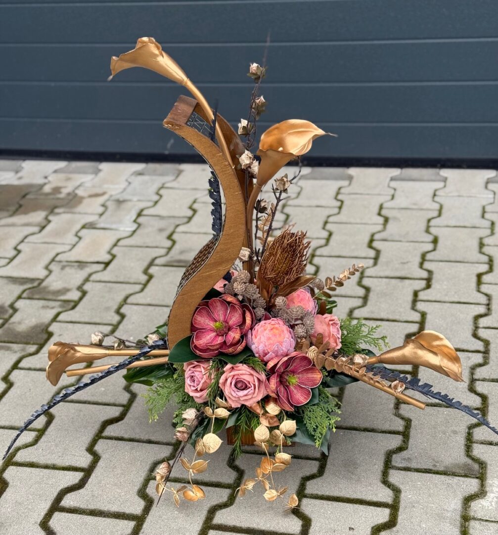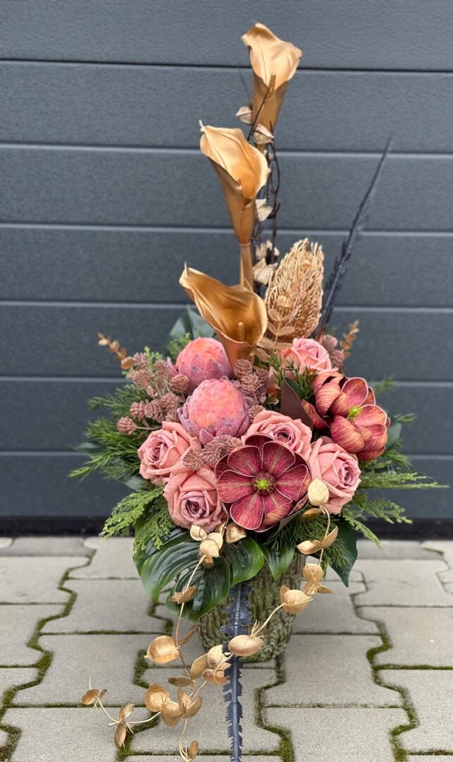 Wszystkie kwiaty sztuczne użyte w naszych kompozycjach są wysokiej jakości – dzięki temu zachwycają swym urokiem i pięknem przez długi czas.