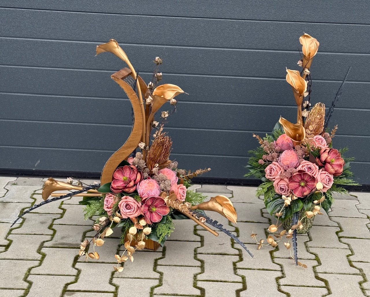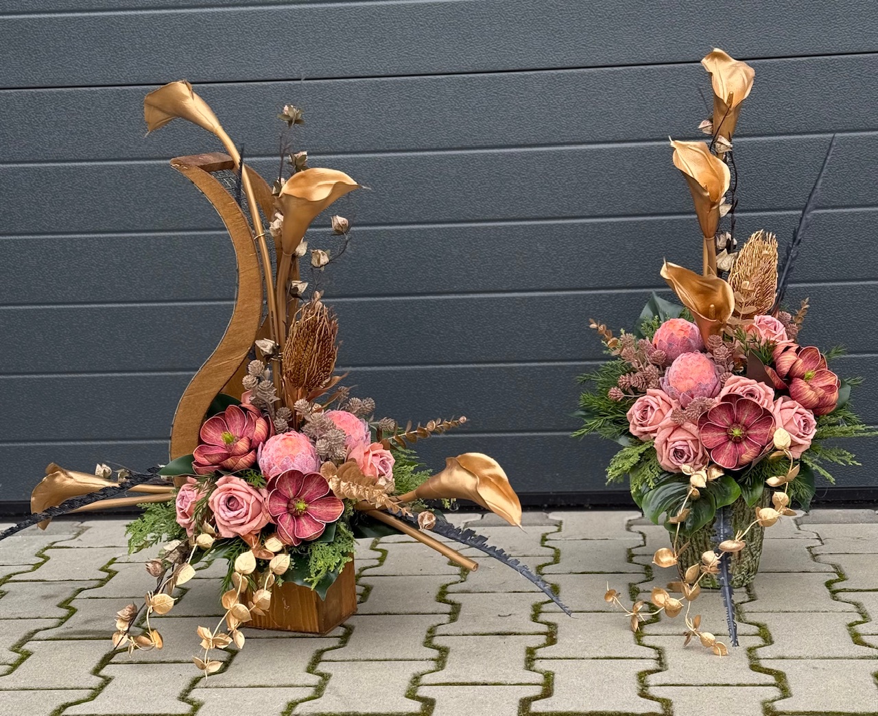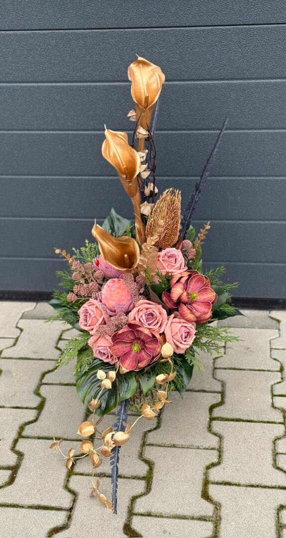 Wszystkie kwiaty sztuczne użyte w naszych kompozycjach są wysokiej jakości – dzięki temu zachwycają swym urokiem i pięknem przez długi czas.