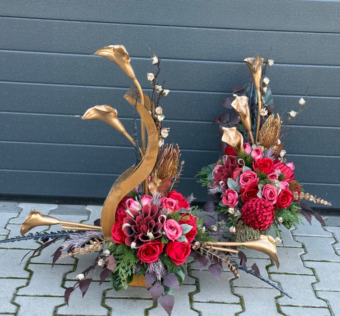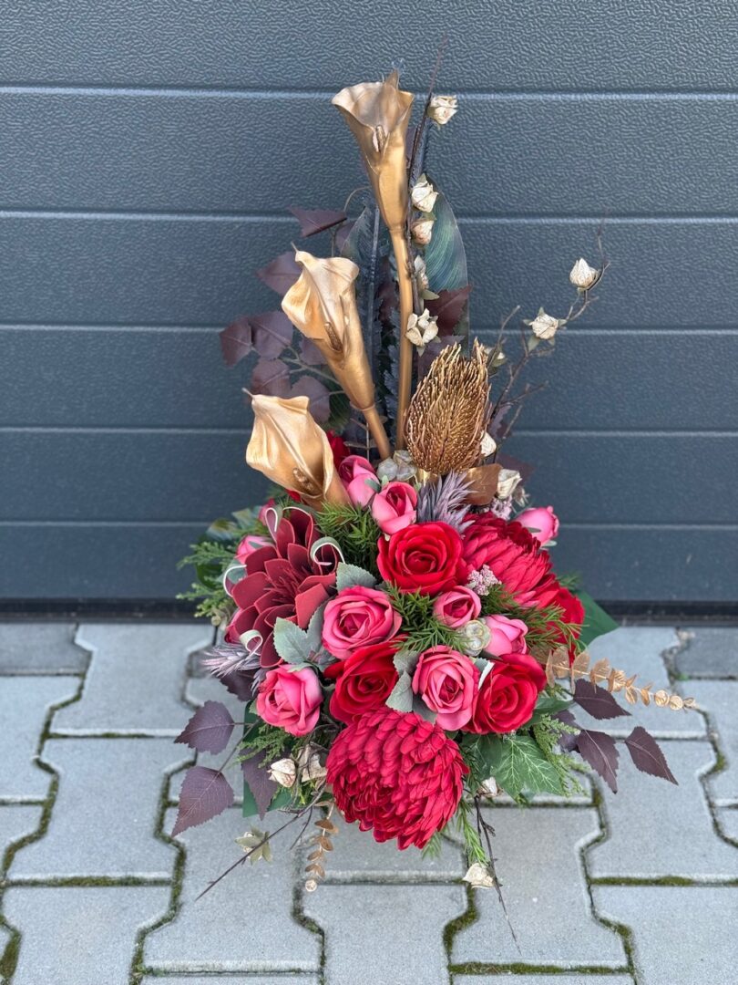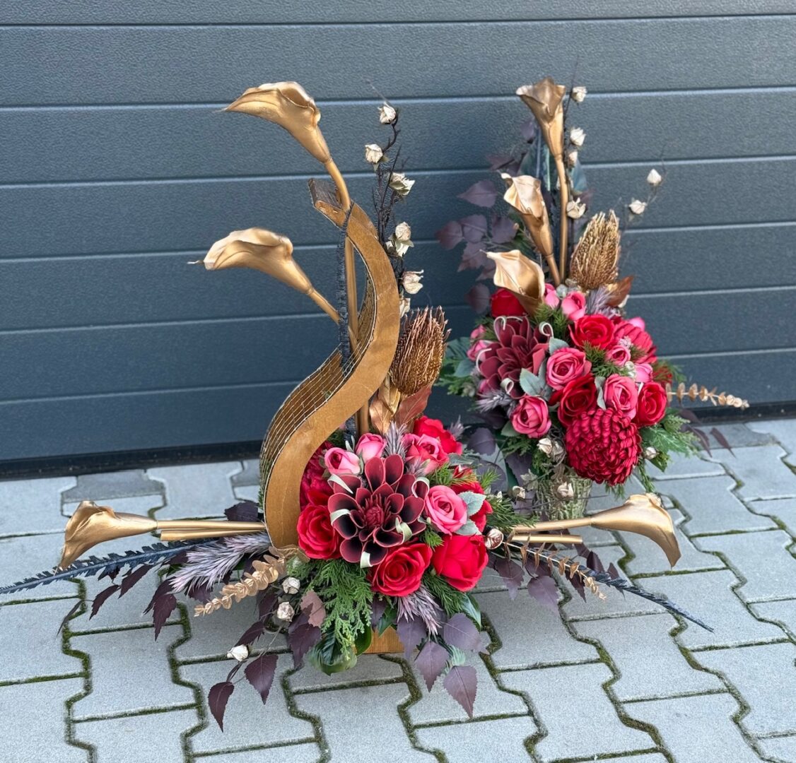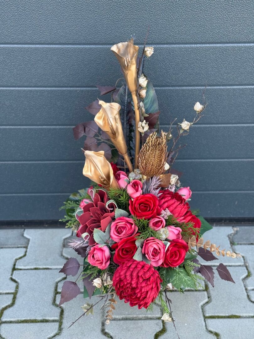 Komplet nagrobny pojemnik złota z czerwienią nr 833