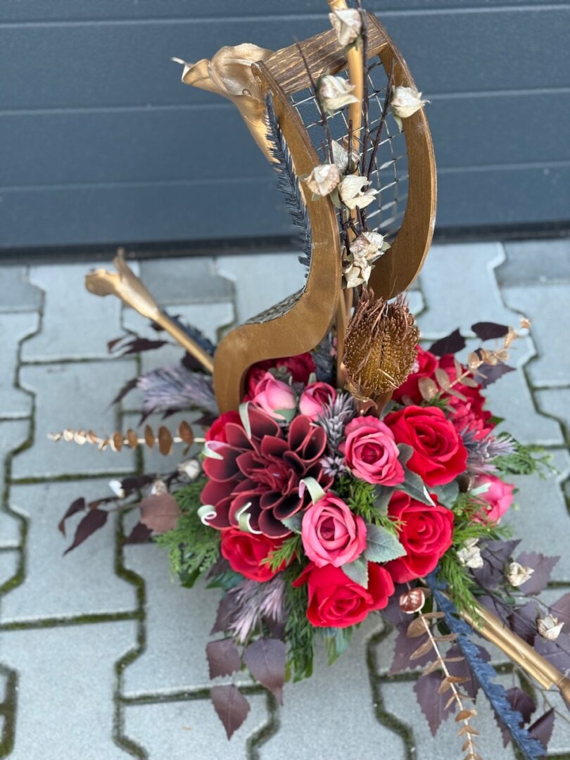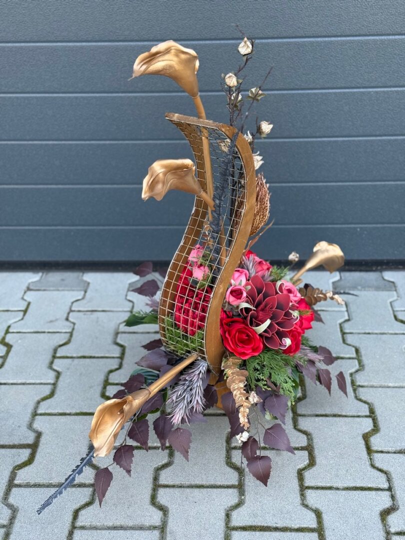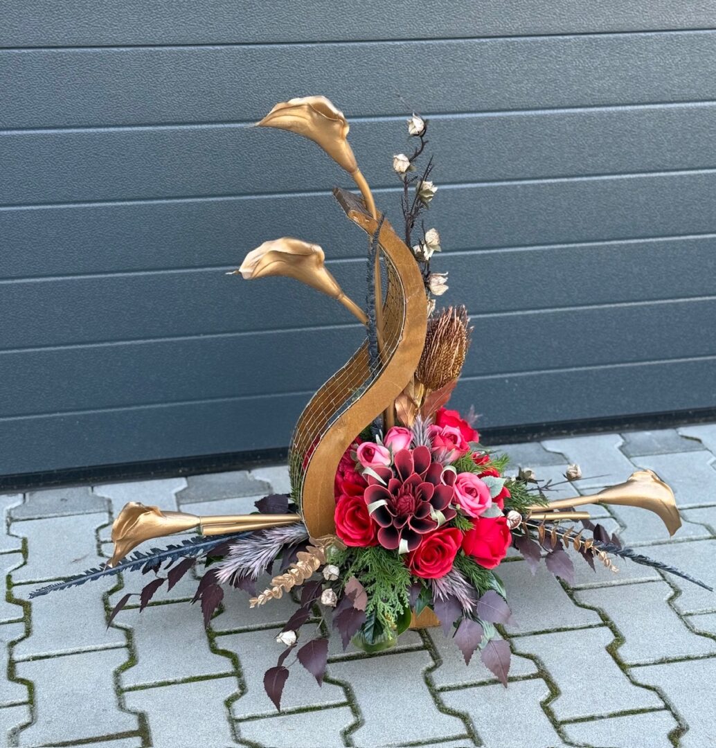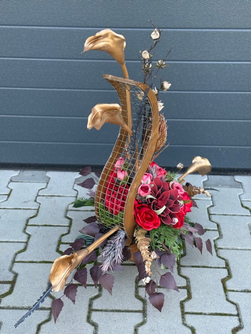 Komplet nagrobny pojemnik złota z czerwienią nr 833