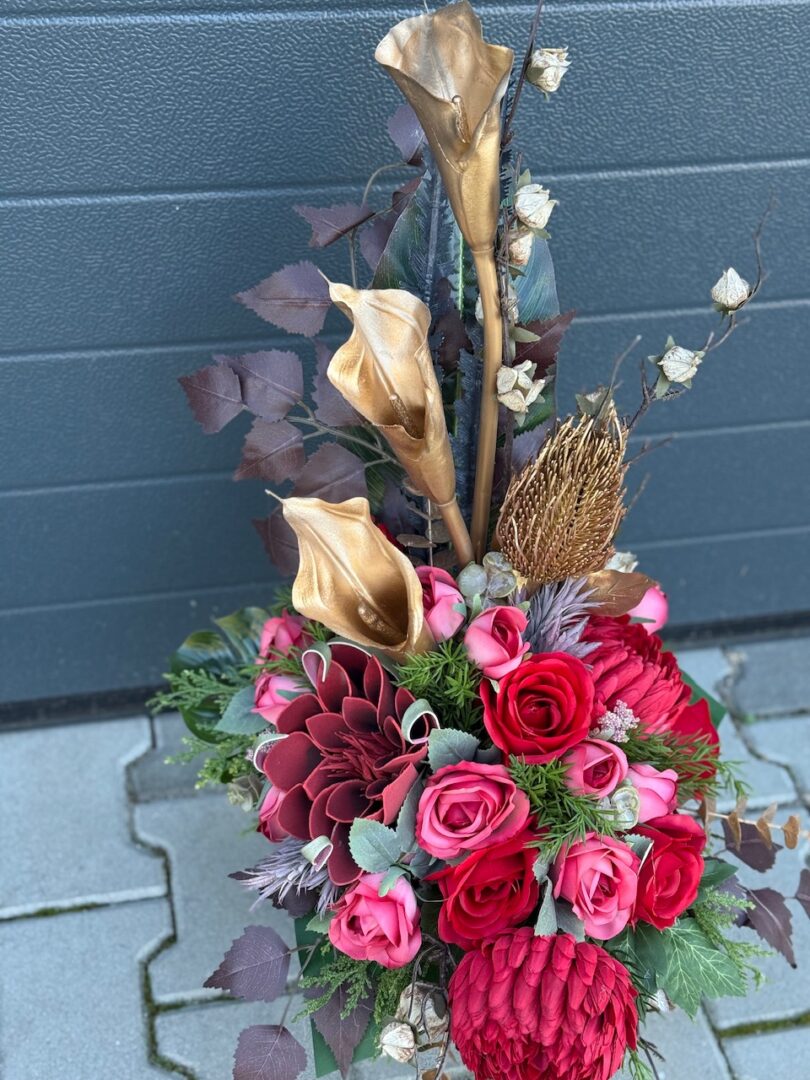 Wszystkie kwiaty sztuczne użyte w naszych kompozycjach są wysokiej jakości – dzięki temu zachwycają swym urokiem i pięknem przez długi czas.