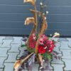 Dekoracja do położenia wykonana w obciążonym drewnianym pojemniku o długość około 80 cm, szerokość około 45 cm, wysokość 75 cm.