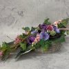 Dekoracja do położenia na grób wykonana w obciążonym drewnianym pojemniku – długość około 80 cm, szerokość około 40 cm.