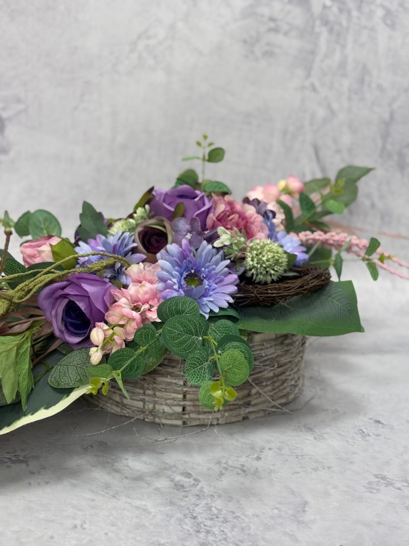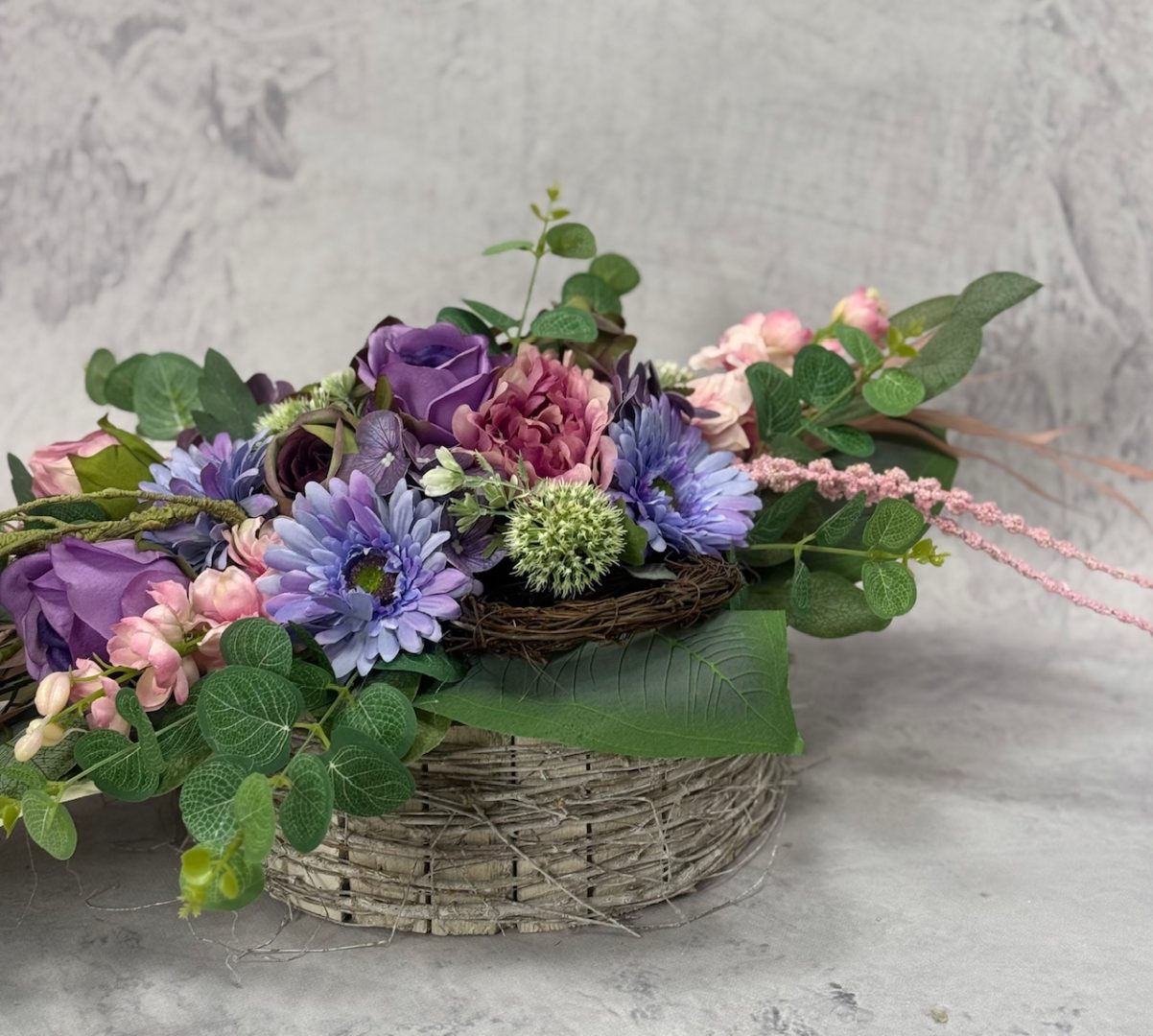 Wszystkie kwiaty sztuczne użyte w naszych kompozycjach są wysokiej jakości – dzięki temu zachwycają swym urokiem i pięknem przez długi czas.