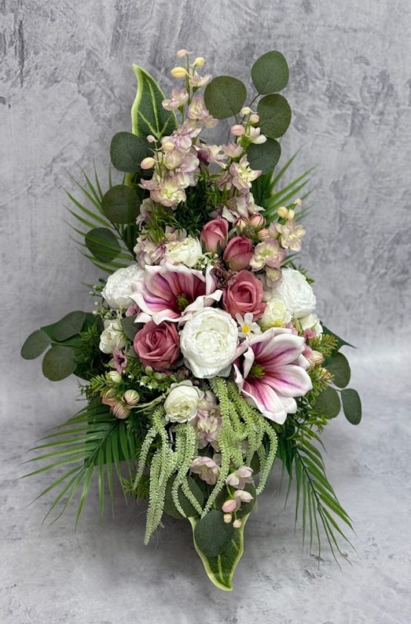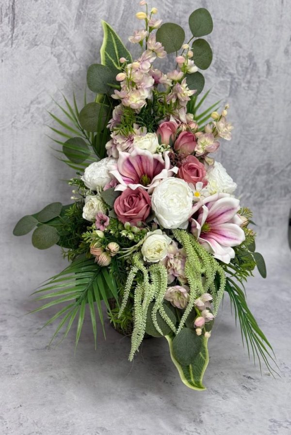 Wszystkie kwiaty sztuczne użyte w naszych kompozycjach są wysokiej jakości – dzięki temu zachwycają swym urokiem i pięknem przez długi czas.