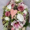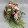 Bukiet na ułożony we wkładzie o standardowych wymiarach 16 cm – wysokość razem z wkładem około 55 cm, szerokość około 43 cm.