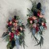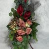 Bukiet na ułożony we wkładzie o standardowych wymiarach 16 cm – wysokość razem z wkładem około 70 cm, szerokość około 45 cm.