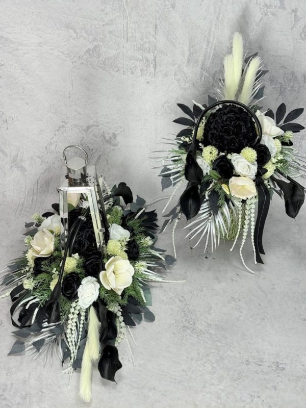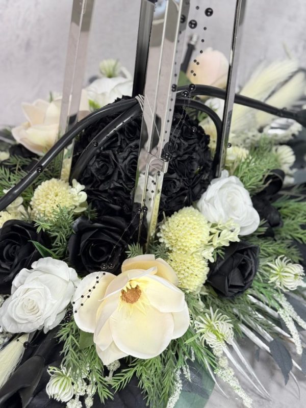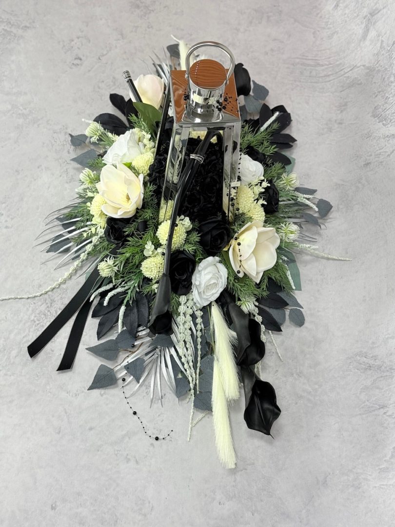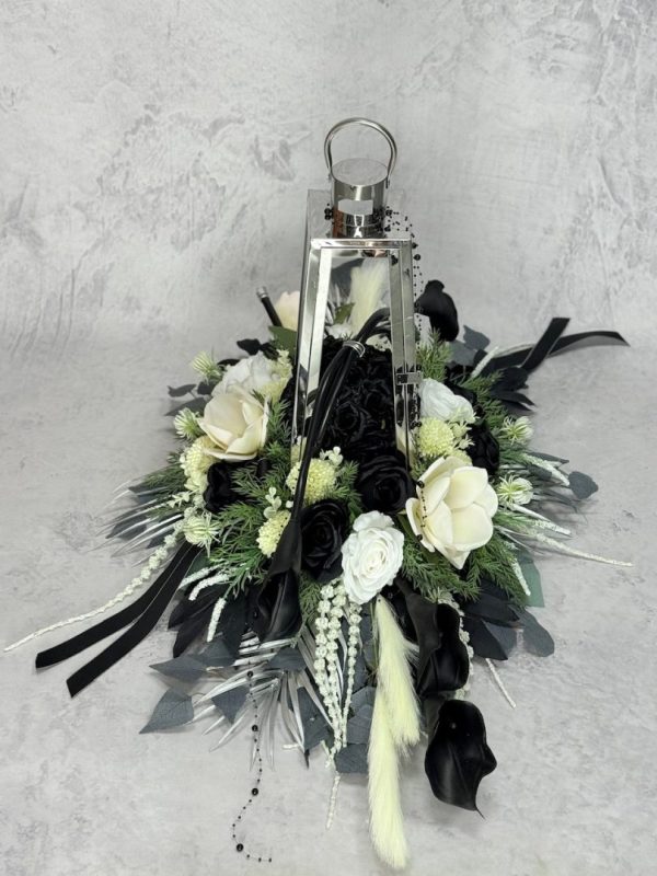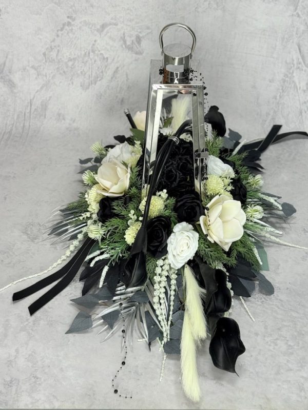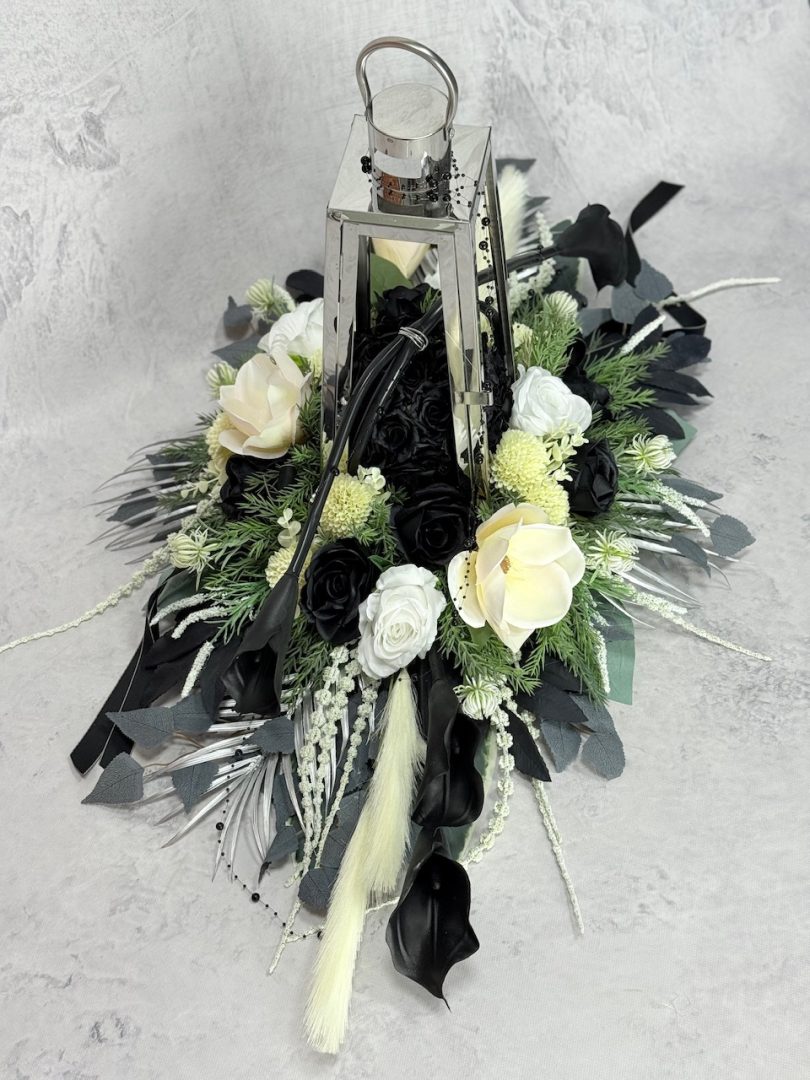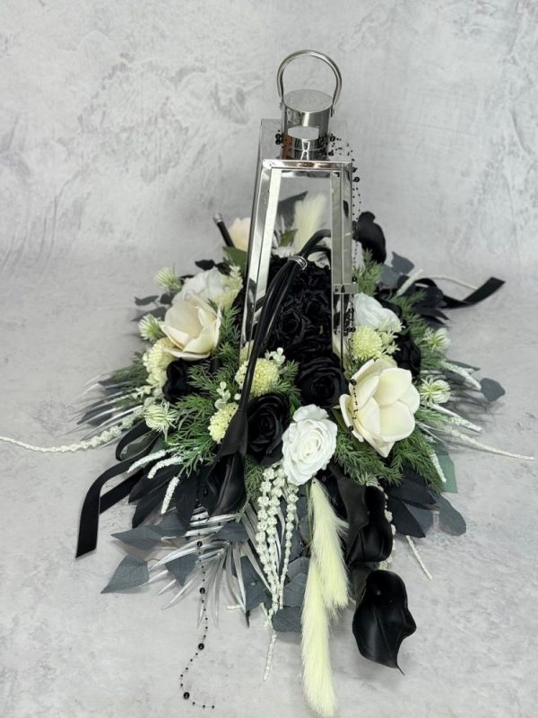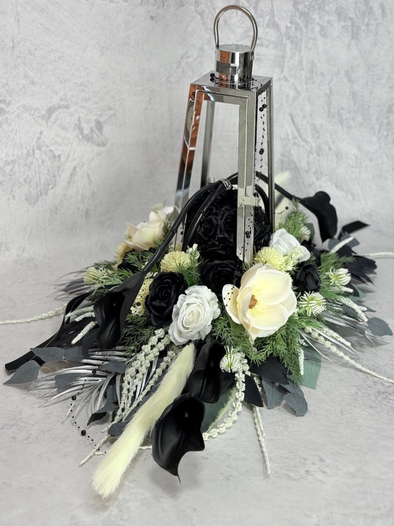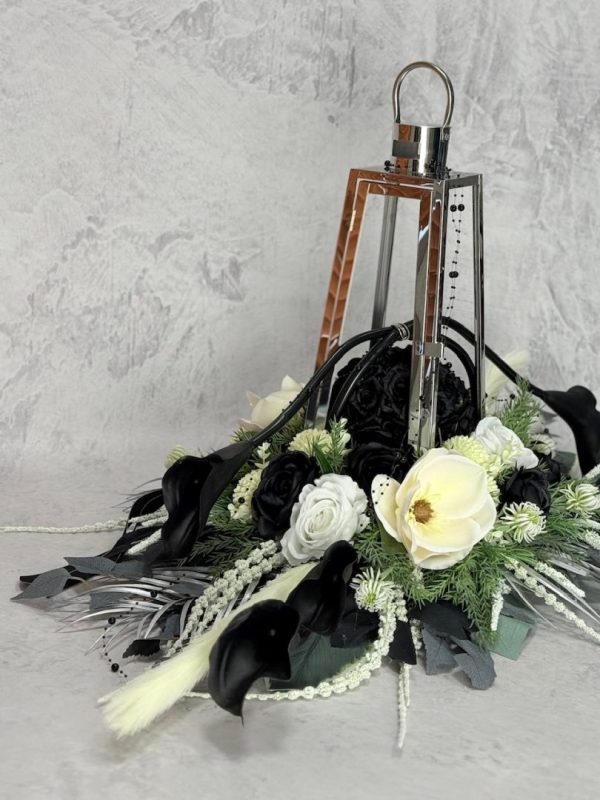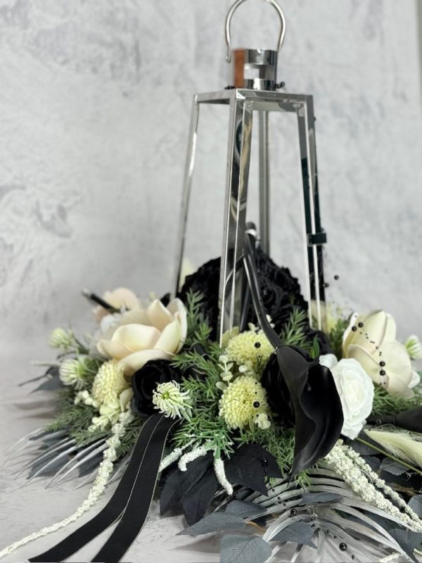Zestaw nagrobny srebrna latarnia z czarnymi kaliami nr 635