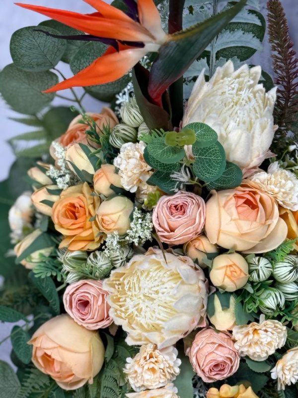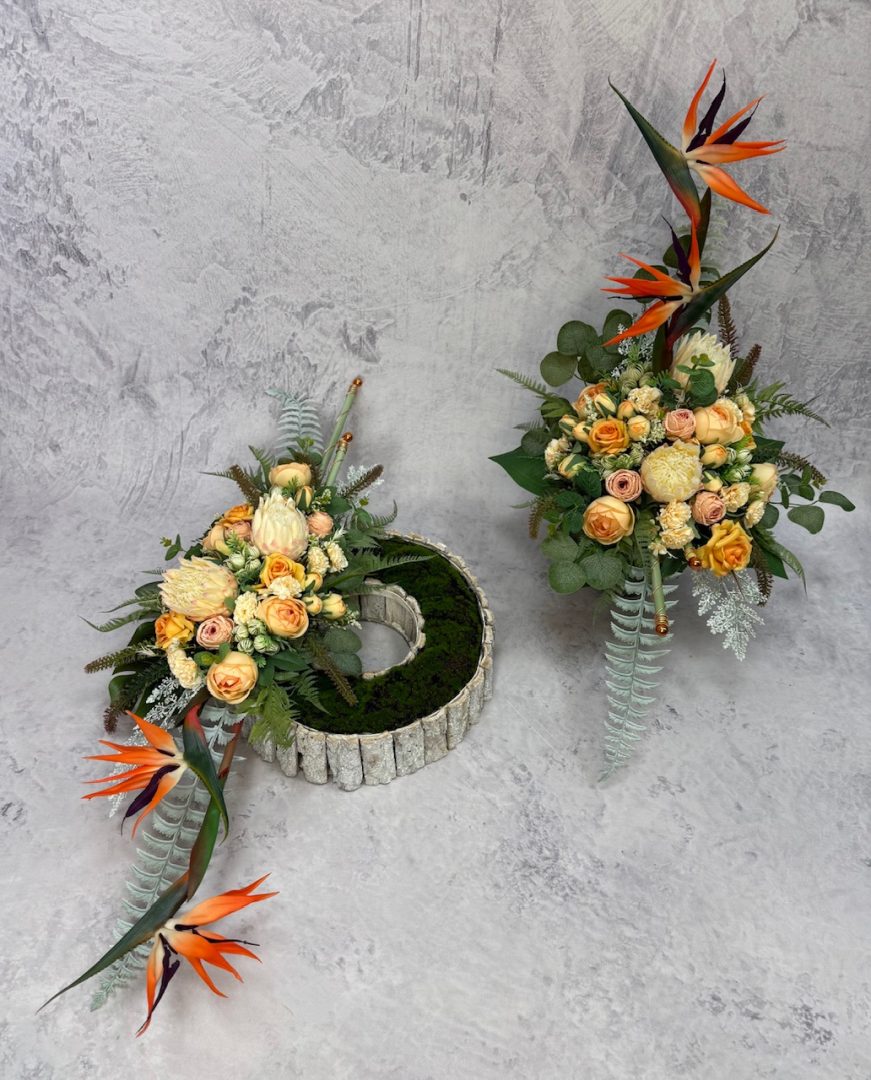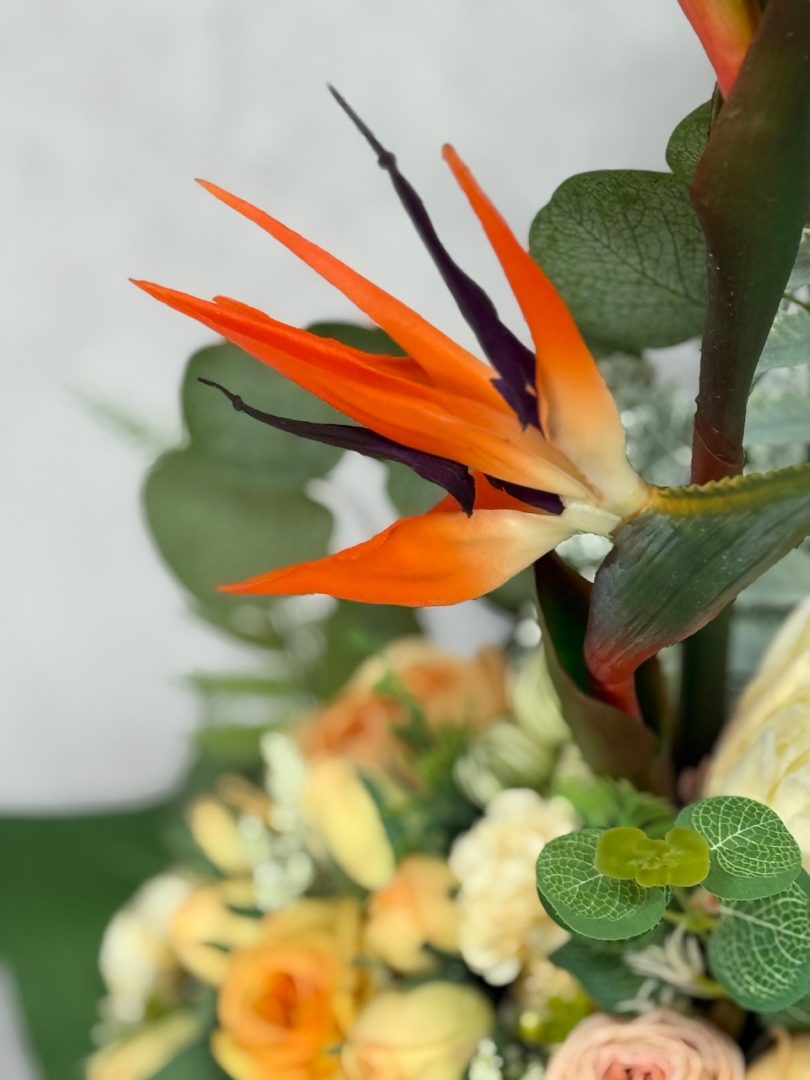 Wszystkie kwiaty sztuczne użyte w naszych kompozycjach są wysokiej jakości – dzięki temu zachwycają swym urokiem i pięknem przez długi czas.