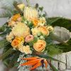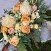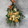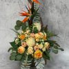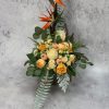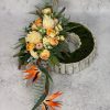 Bukiet na ułożony we wkładzie o standardowych wymiarach 16 cm – wysokość razem z wkładem około 66 cm, szerokość około 44 cm.