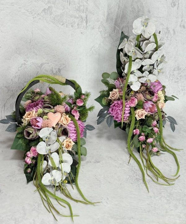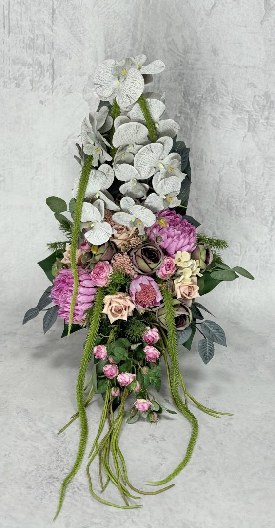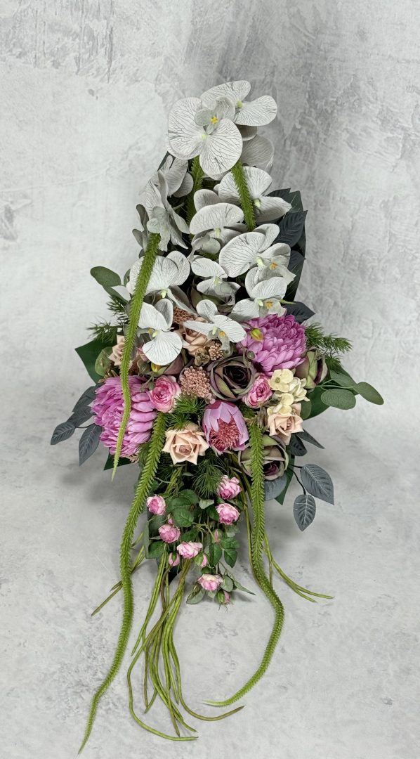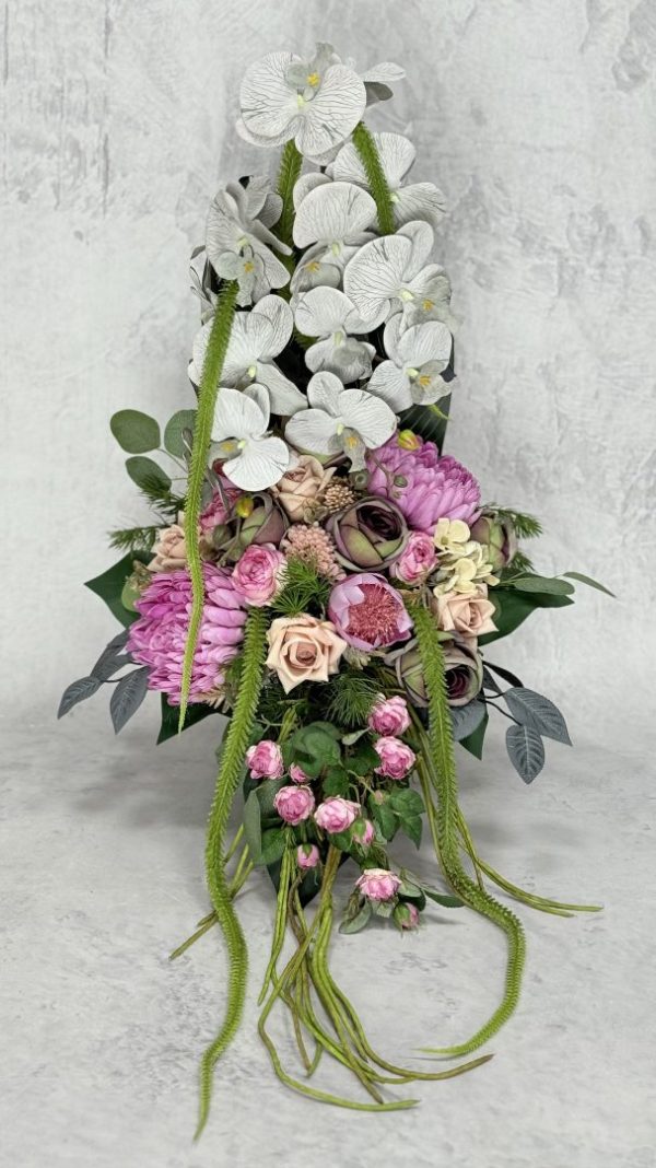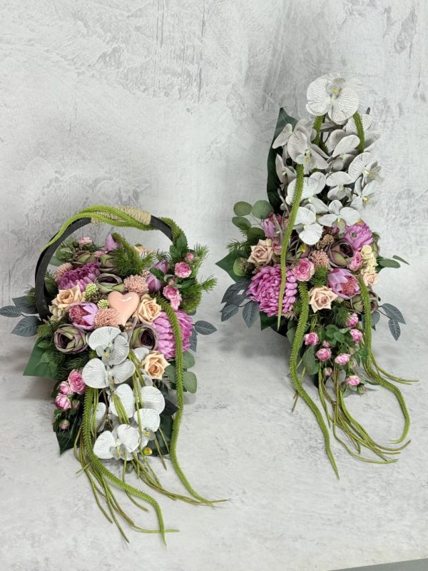 Wszystkie kwiaty sztuczne użyte w naszych kompozycjach są wysokiej jakości – dzięki temu zachwycają swym urokiem i pięknem przez długi czas.