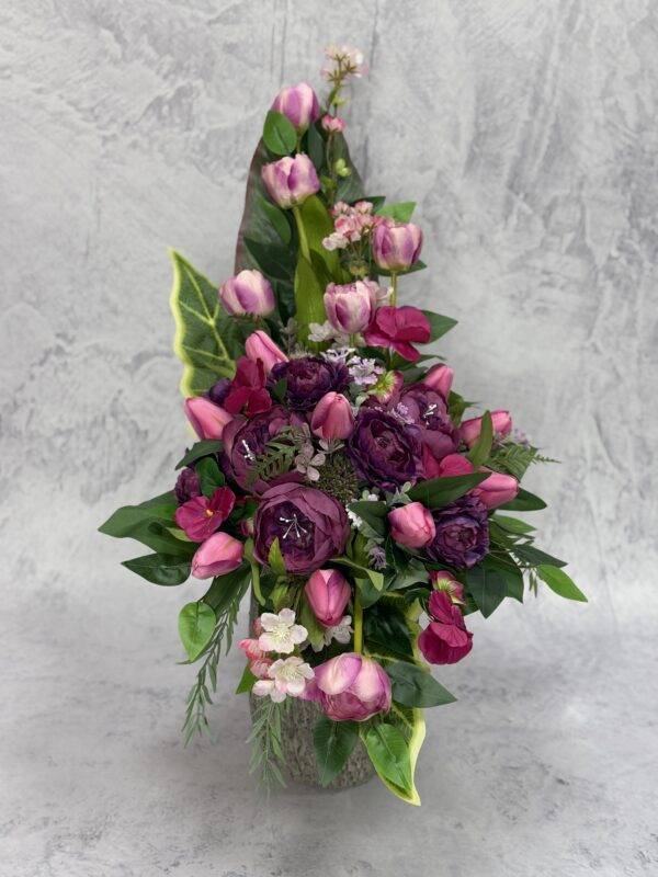Wszystkie kwiaty sztuczne użyte w naszych kompozycjach są wysokiej jakości – dzięki temu zachwycają swym urokiem i pięknem przez długi czas.