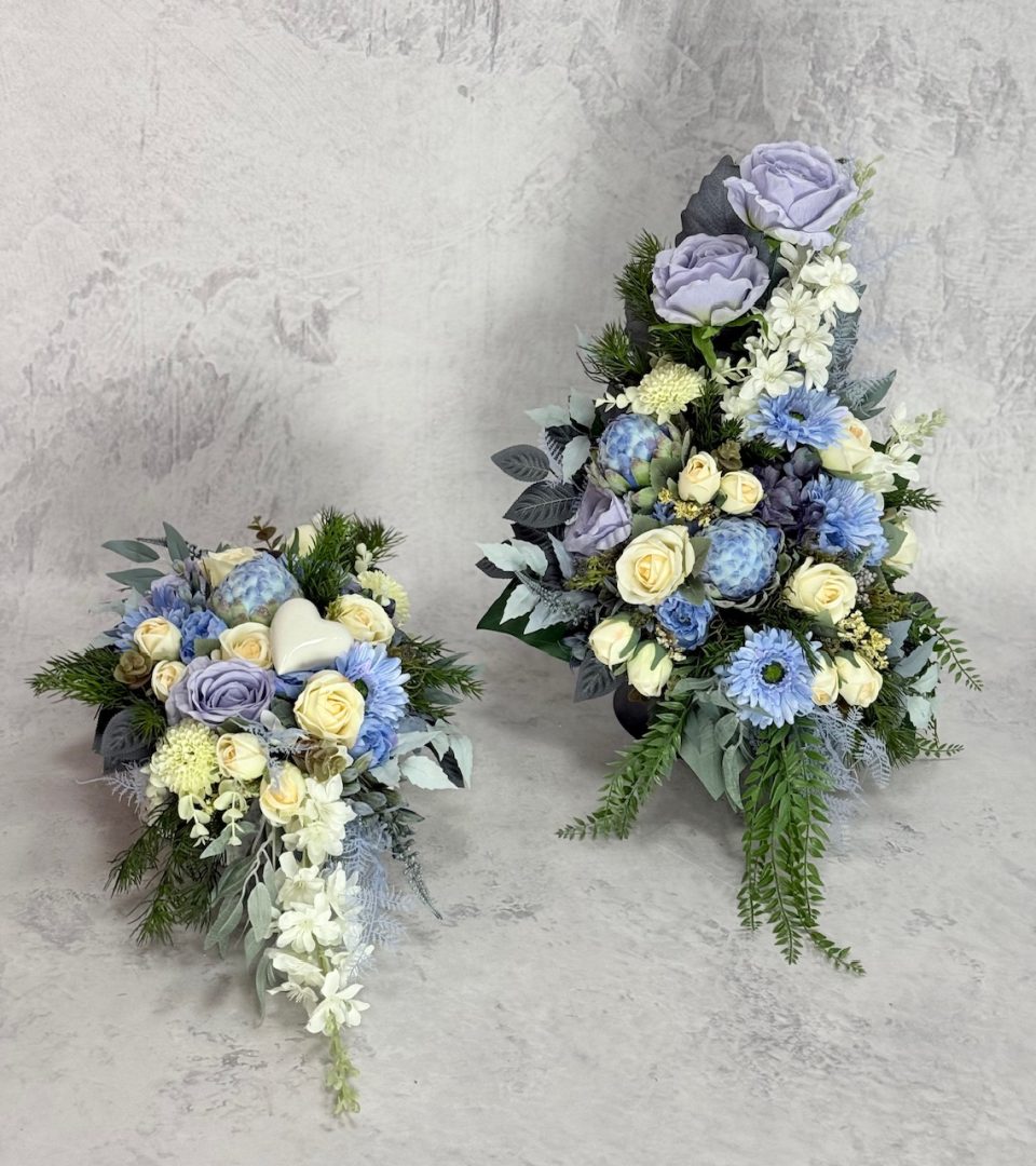 Zestaw nagrobny w w niebiesko kremowych kolorach nr 643
