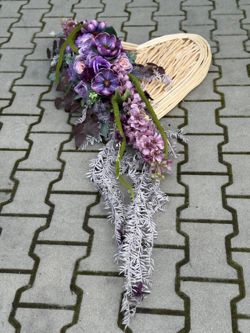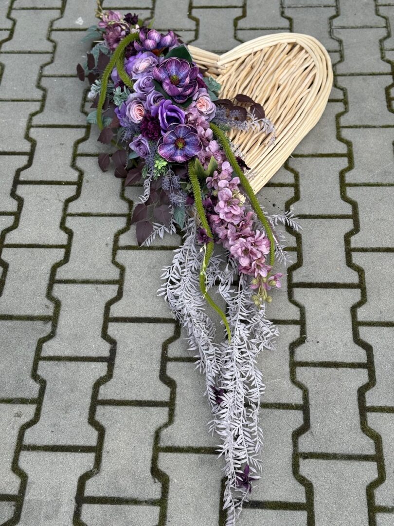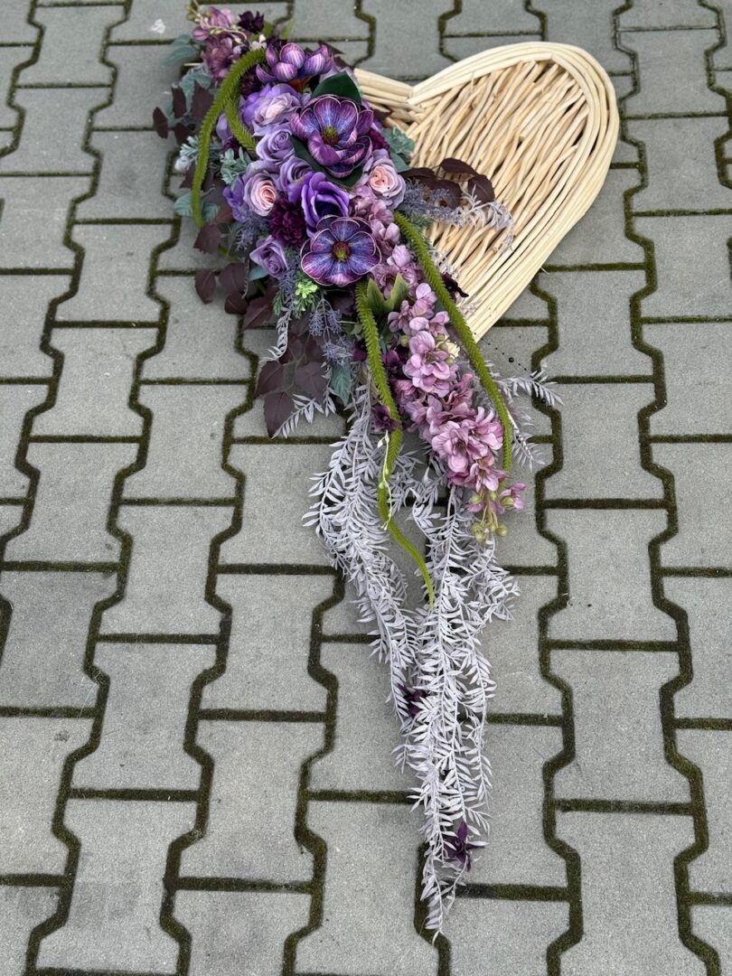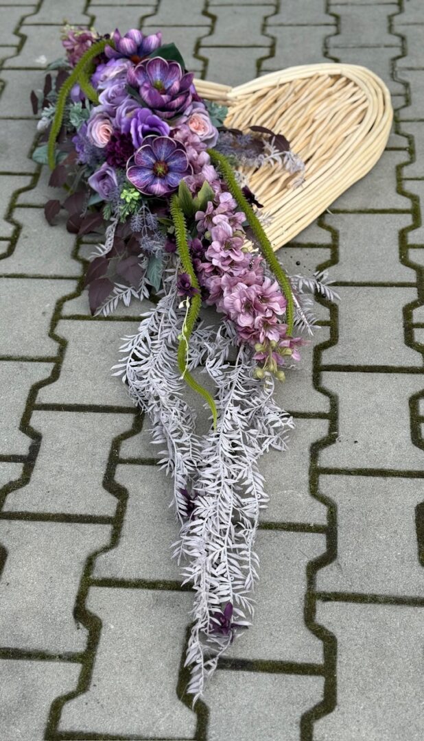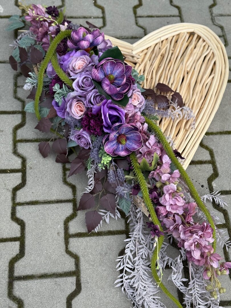 Zestaw nagrobny wiklinowe serce fioletowe kwiaty nr 805