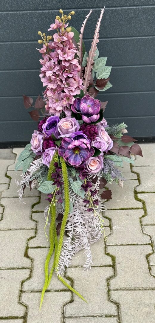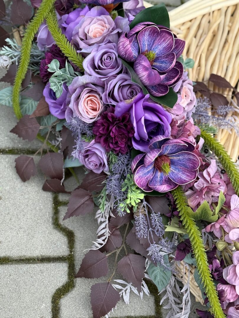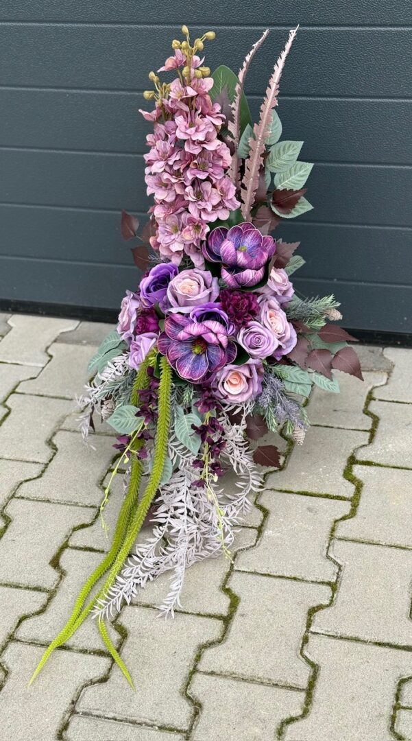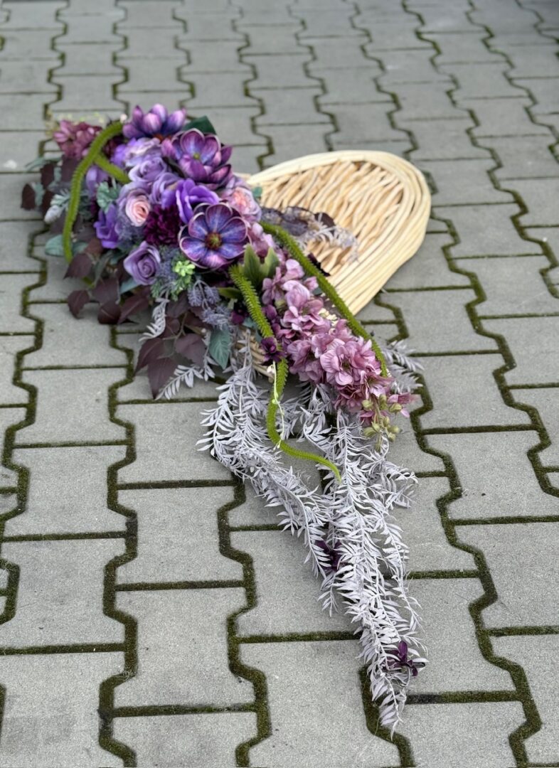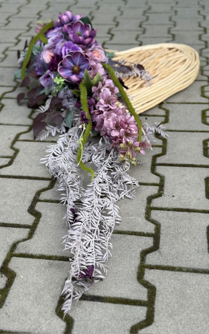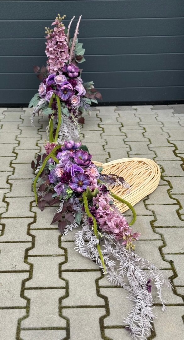 Zestaw nagrobny wiklinowe serce fioletowe kwiaty nr 805