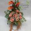 Zestaw nagrobny wiklinowy pojemnik z kwiatami w jesiennych kolorach nr 514