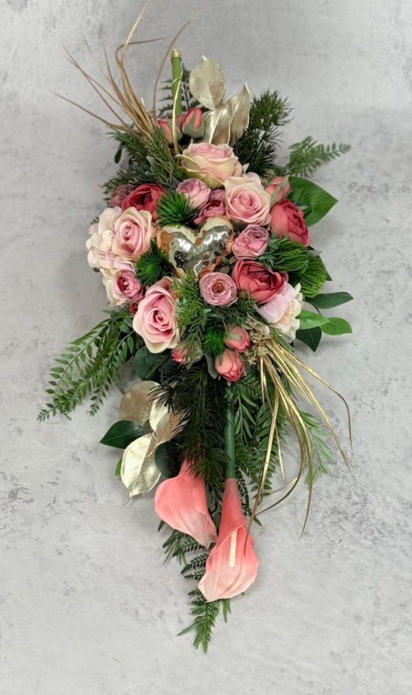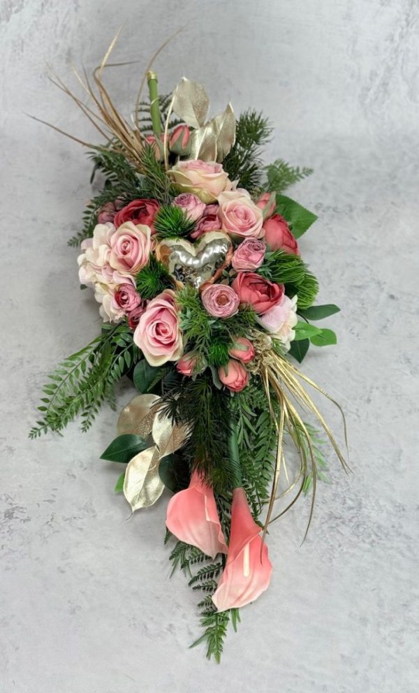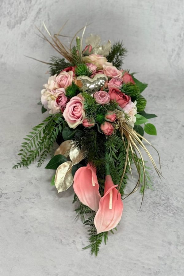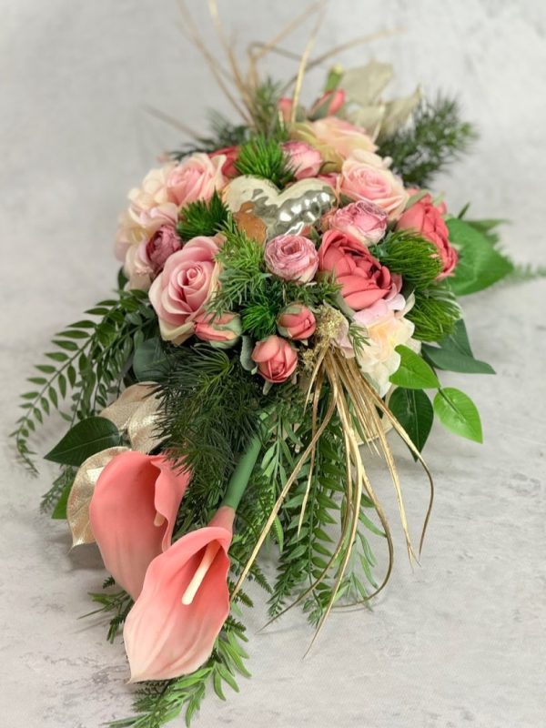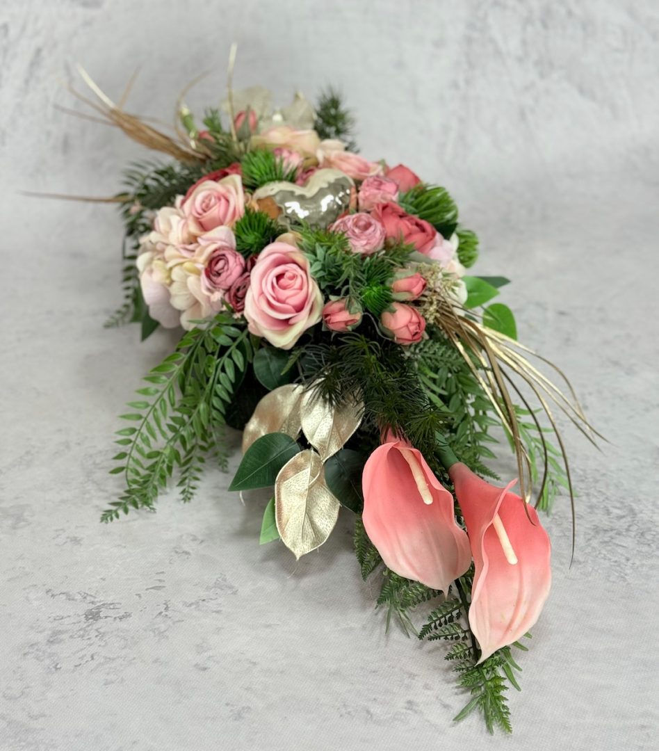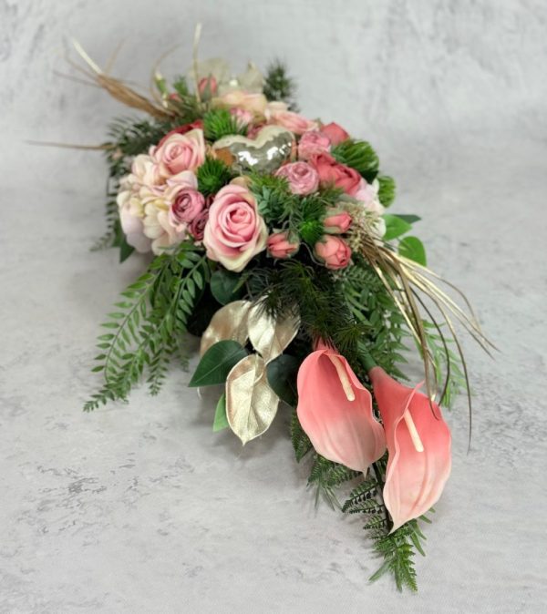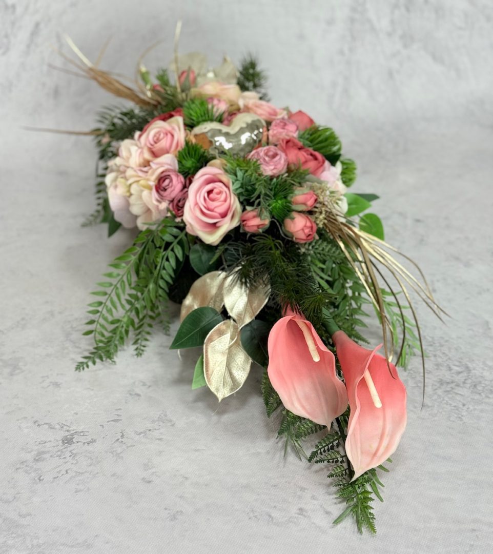 Zestaw nagrobny z kalią i pełnikiem z sercem nr 642